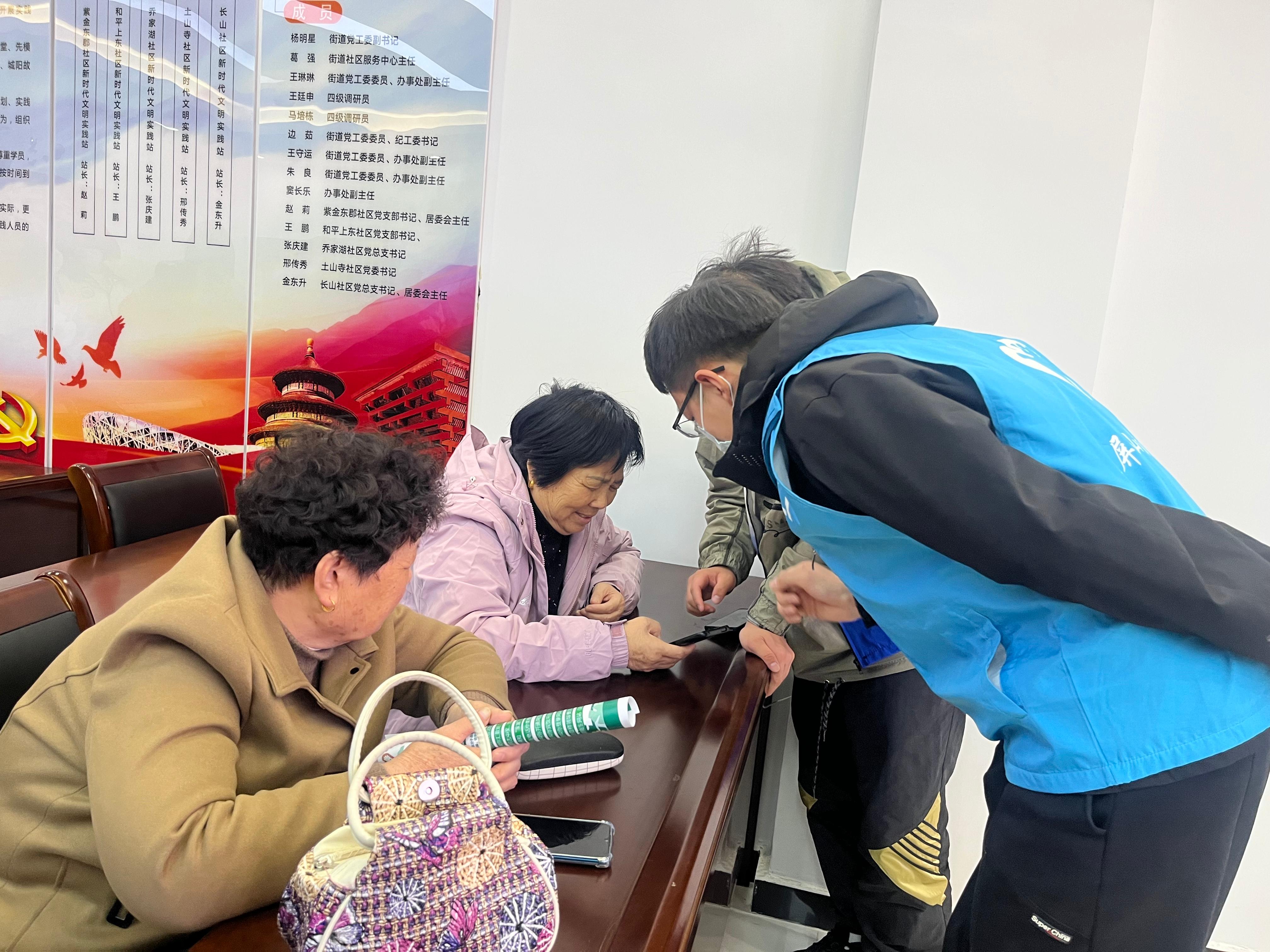 手把手心连心,老人解锁“新技能”。为了帮助老年人更好地融入数字生活,志愿者们手把手教老人使用智能手机,为老年人科普手机预约挂号、水电缴费、网约车等涉及生活、出行、医疗等方面的功能,让老年人也能共享信息时代的便利。此外,志愿者们结合近年来网络诈骗典型案例,发放反诈宣传单,提醒老人保护个人隐私信息,提高对于互联网诈骗信息的甄别能力和防范意识。