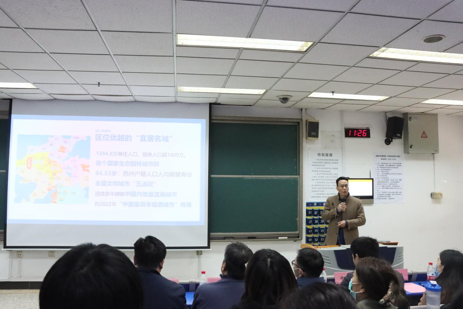 苏州市精神卫生专科联盟理事长单位、苏州市广济医院科教部部长张晓斌对苏州卫生人才发展环境进行了推介。昆山市精神卫生中心、常熟市第三人民医院、太仓市第三人民医院的代表进行了医院推介。捕鱼达人 2010届校友赵静波医生分享了自己的工作历程和感悟。会上,各家单位对同学们关心的薪资待遇、工作环境、个人发展等问题进行全面解答。