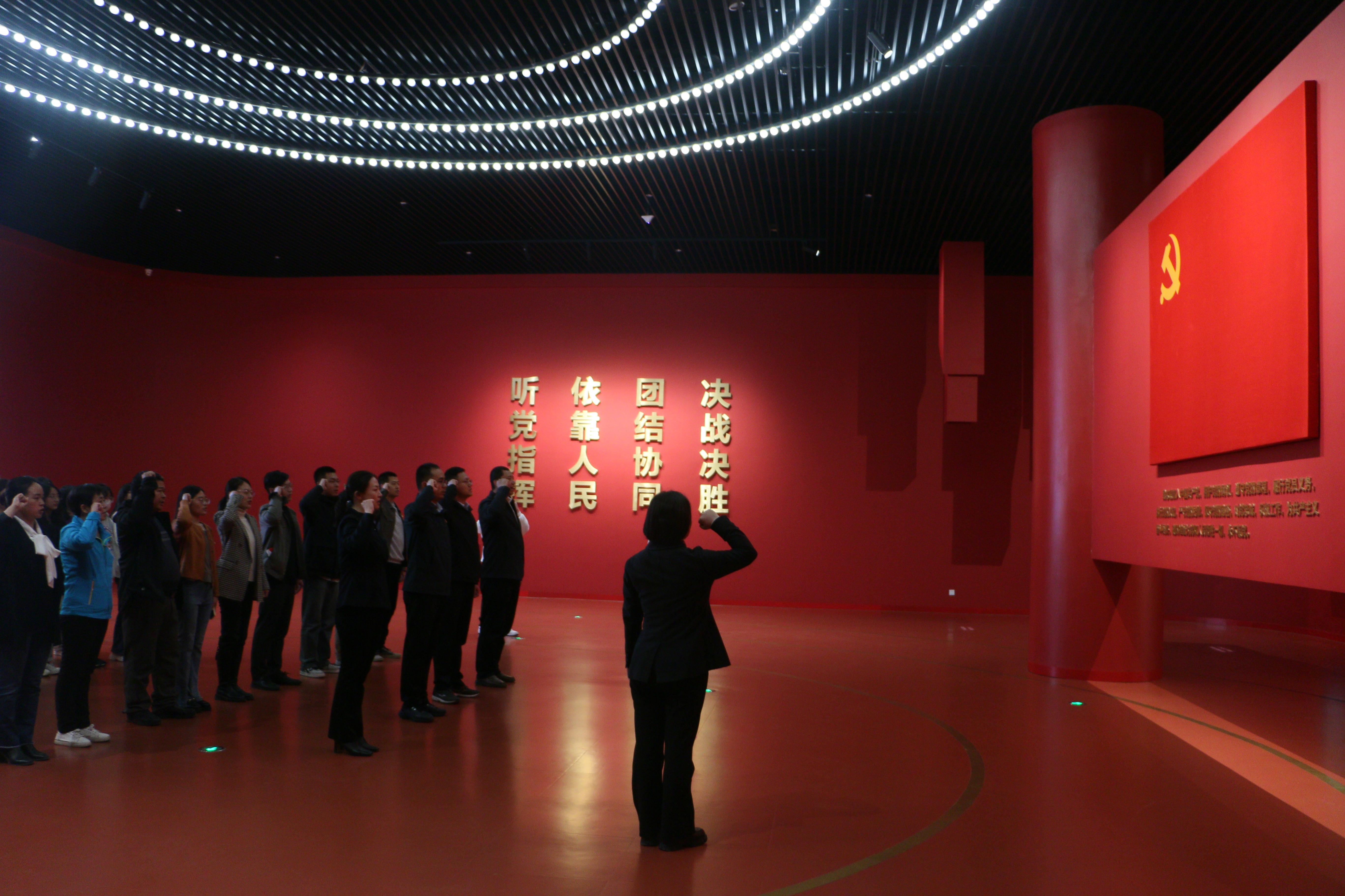 支部党员来到淮海战役纪念馆,通过一张张历史照片,一件件红色文物,学习革命先辈矢志不渝的不朽精神。面向党旗,全体党员紧握右拳,用铿锵有力的声音重温入党誓词,鞭策和鼓励自己不忘初心,牢记使命。
