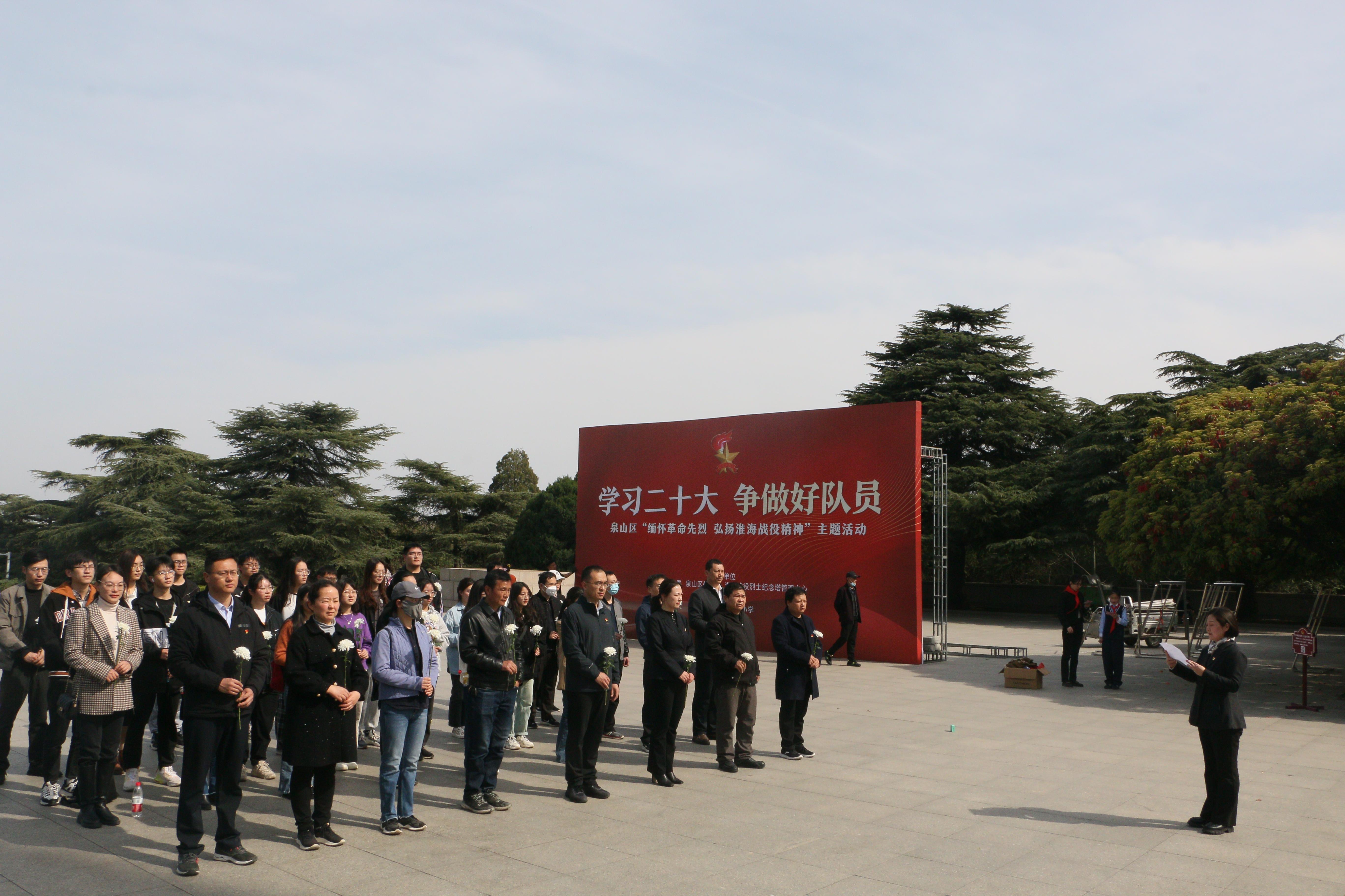 在雄伟庄严的淮海烈士纪念塔前,全体师生党员怀着沉重的心情为革命烈士默哀致敬,绕塔一周,驻足瞻仰塔基上的浮雕和回廊上的烈士名录,在肃穆中回望那段峥嵘岁月。