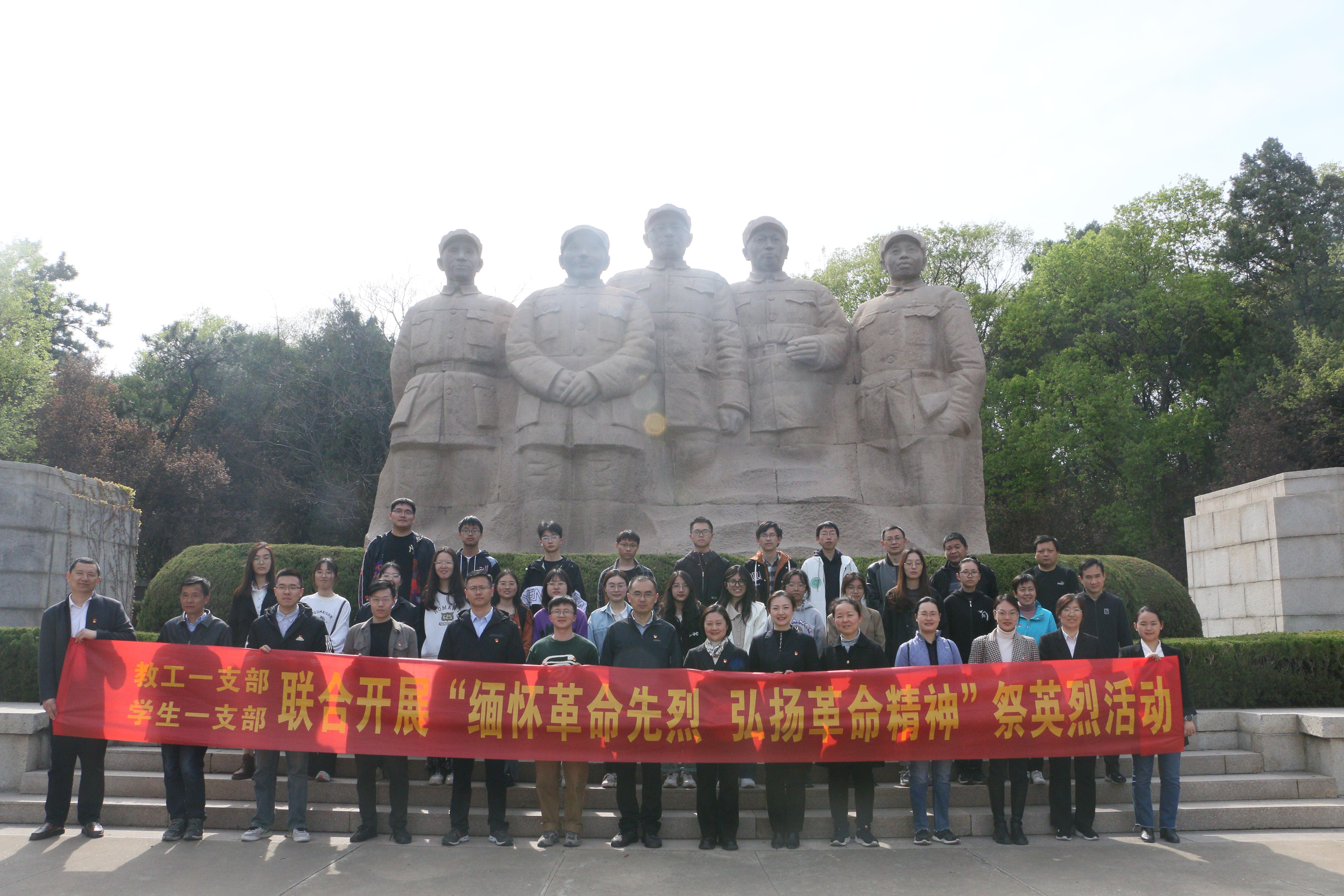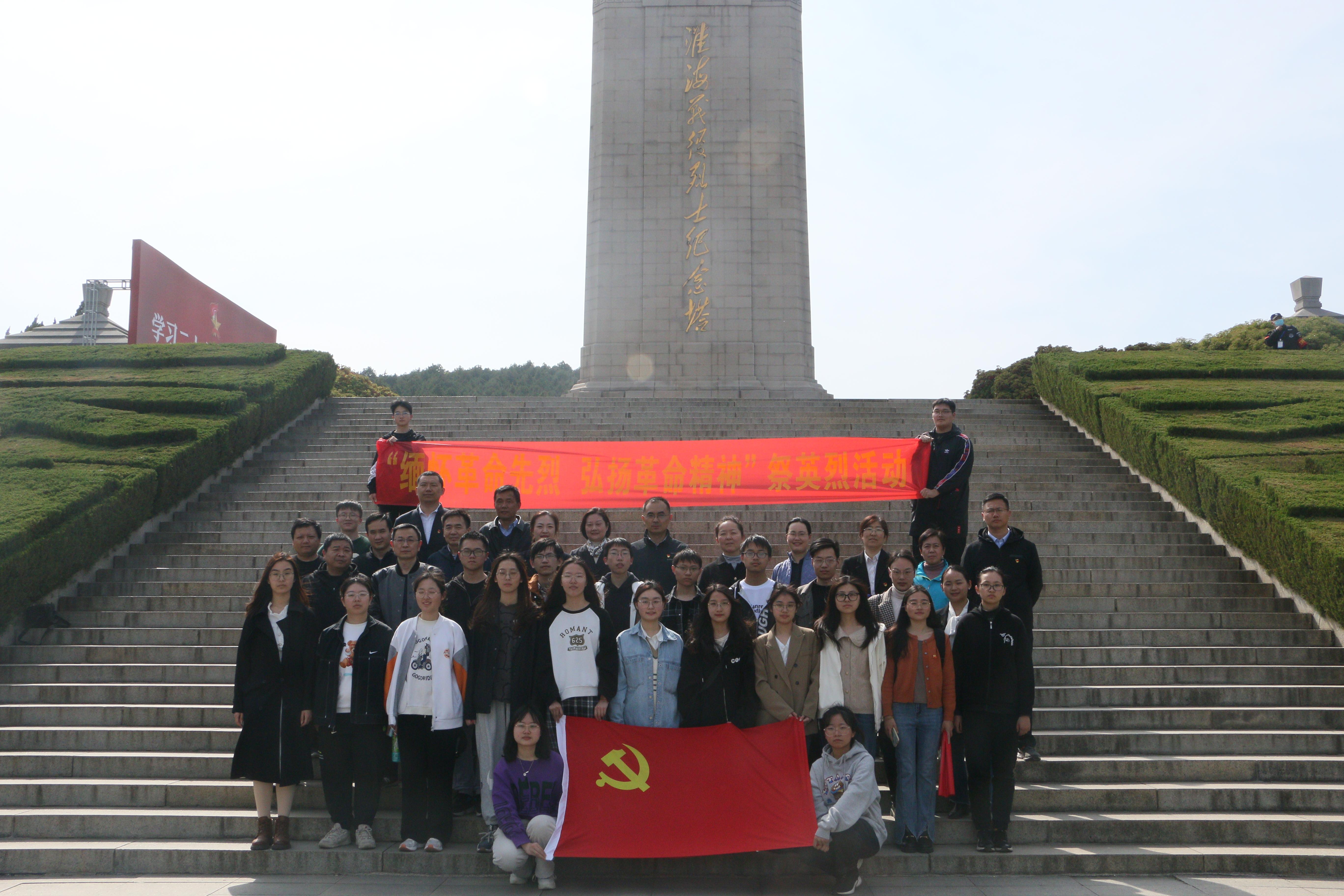 在清明节来临之际,为缅怀革命先烈精神,深入开展党员教育,3月29日下午,麻醉捕鱼达人 教工一支部与学生一支部全体党员前往淮海烈士纪念塔开展祭扫活动。
