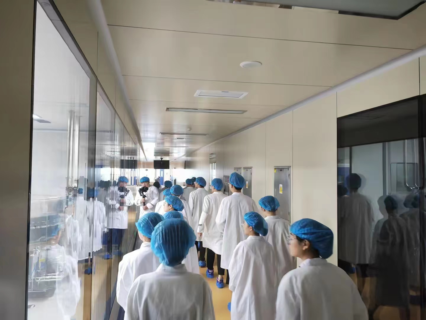 为增强同学们的切身体验感,调研团来到工厂的生产车间,学习了药品从玻璃瓶的粗洗、精洗、内冲吹瓶、过滤、压缩空气、预热灭菌、定量灌装、烘箱、冷却轧盖到包装入库的全过程。感受到了“一切困难都不能把我们打倒,唯有质量”的扬子江信条。