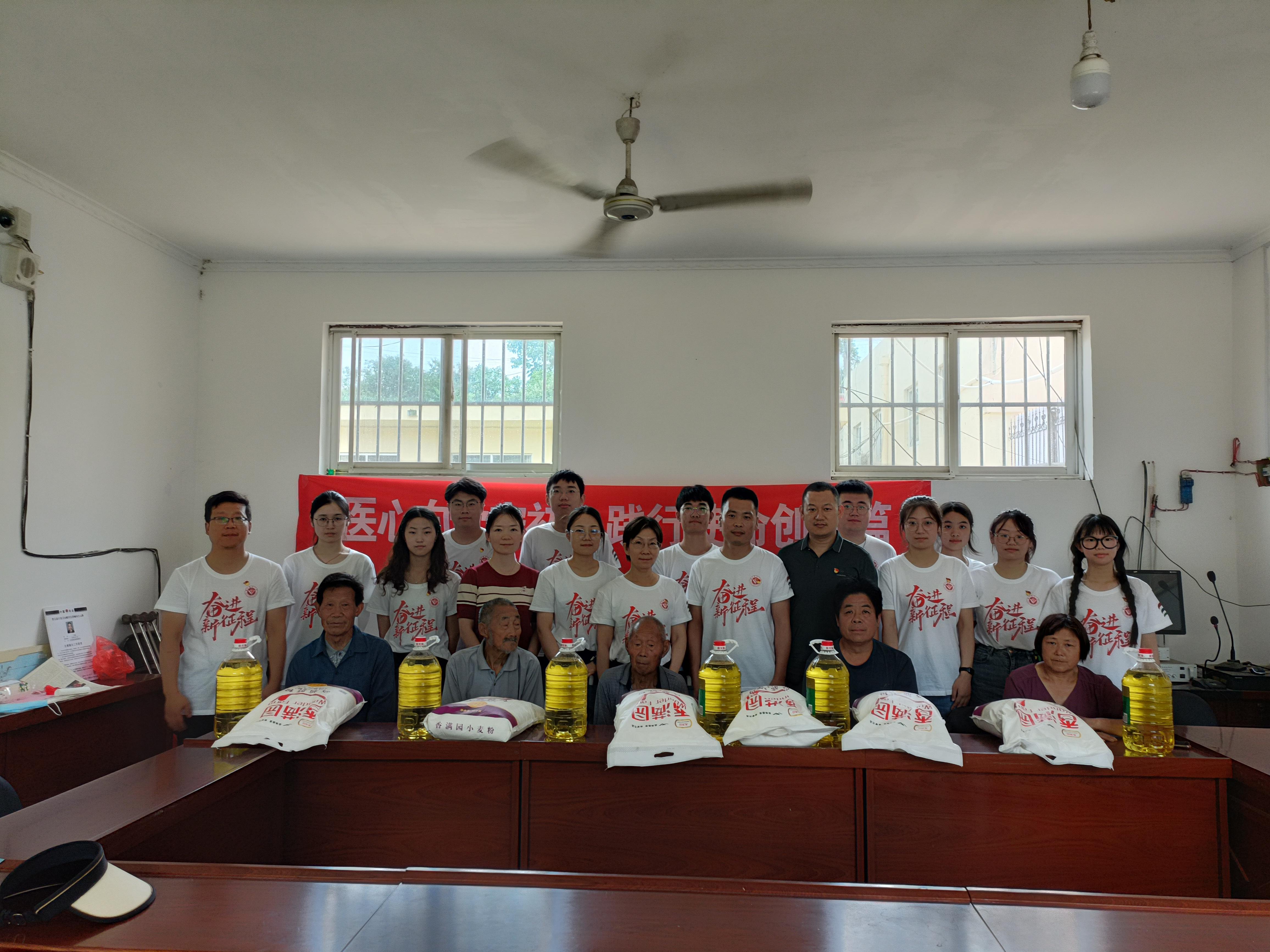 在八路军山东纵队被服厂旧址的大古台村,学生党员与村支书任庆香以及四位老党员、老革命进行了座谈,认真聆听老人们讲述关于大青山突围战鲜为人知的感人故事。老人们结合亲身经历,对实践队成员寄予期望,希望青年学子能牢记人民伟力,坚定信仰力量,传承好共产党员风范,学好本领,报效国家。座谈会后,同学们向老党员、老革命赠送慰问品,表达崇高的敬意。