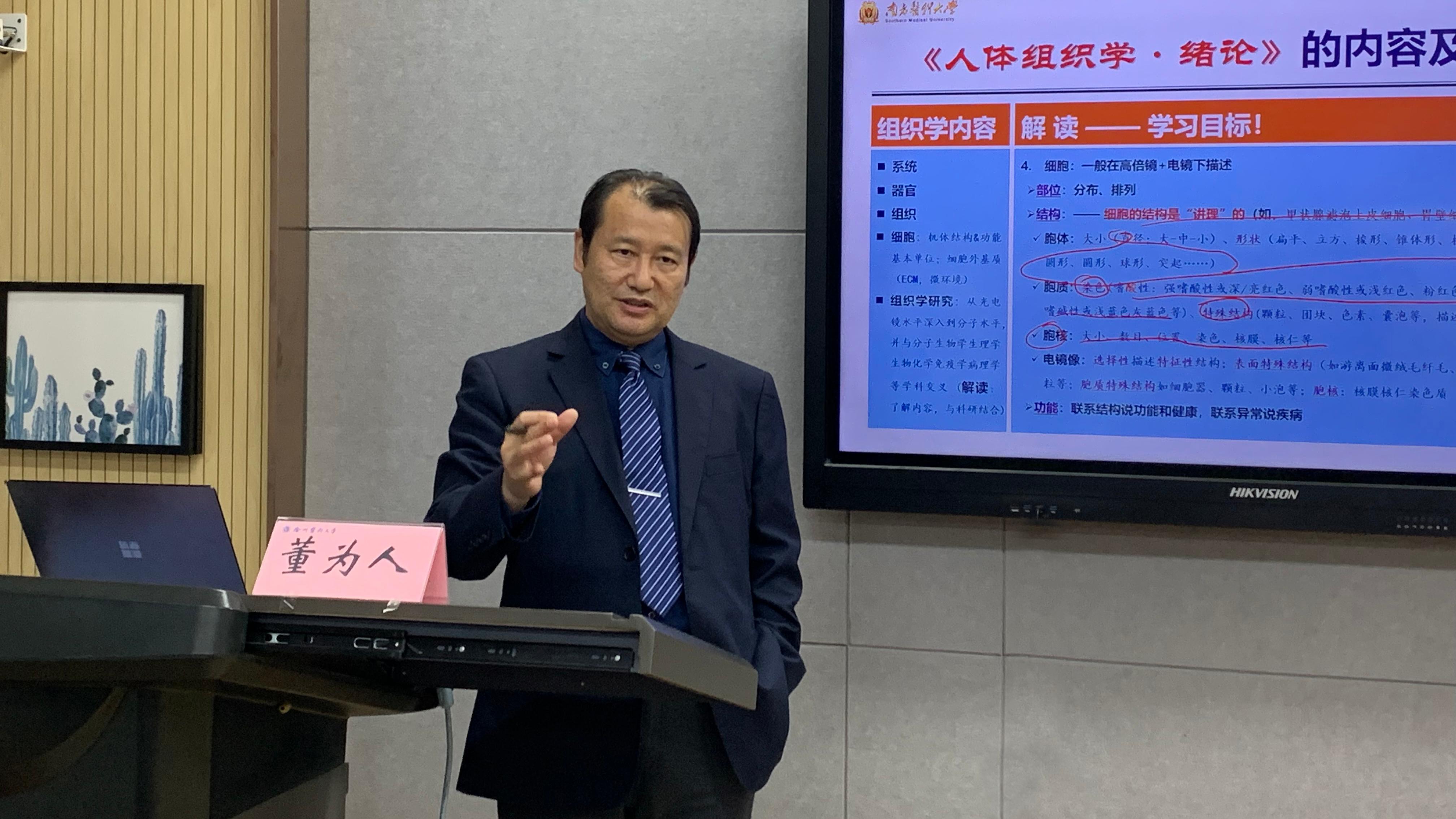 董为人教授的主题报告旁征博引,从世界大势、教育现状、创新思维、医学人文、健康中国等多角度阐述了“课程大思政设计”内涵,用自身医学教育经历和教学经验生动诠释如何实践“创新教育”“医教融合”“科教融汇”及“立德树人”。