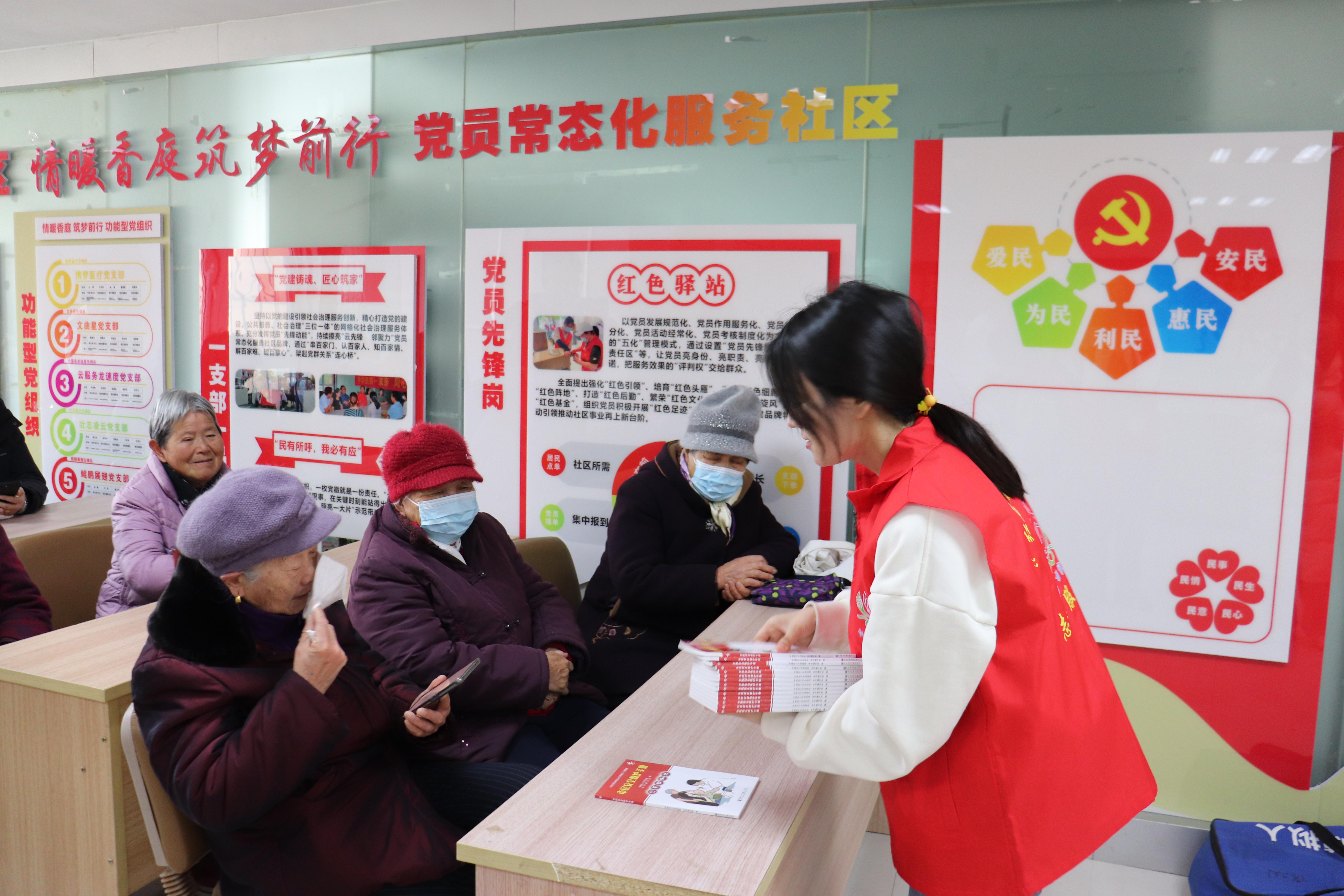 少数民族学生志愿者还在小区内进行《市民安全手册》的发放,并向居民进行安全和急救知识的讲解。