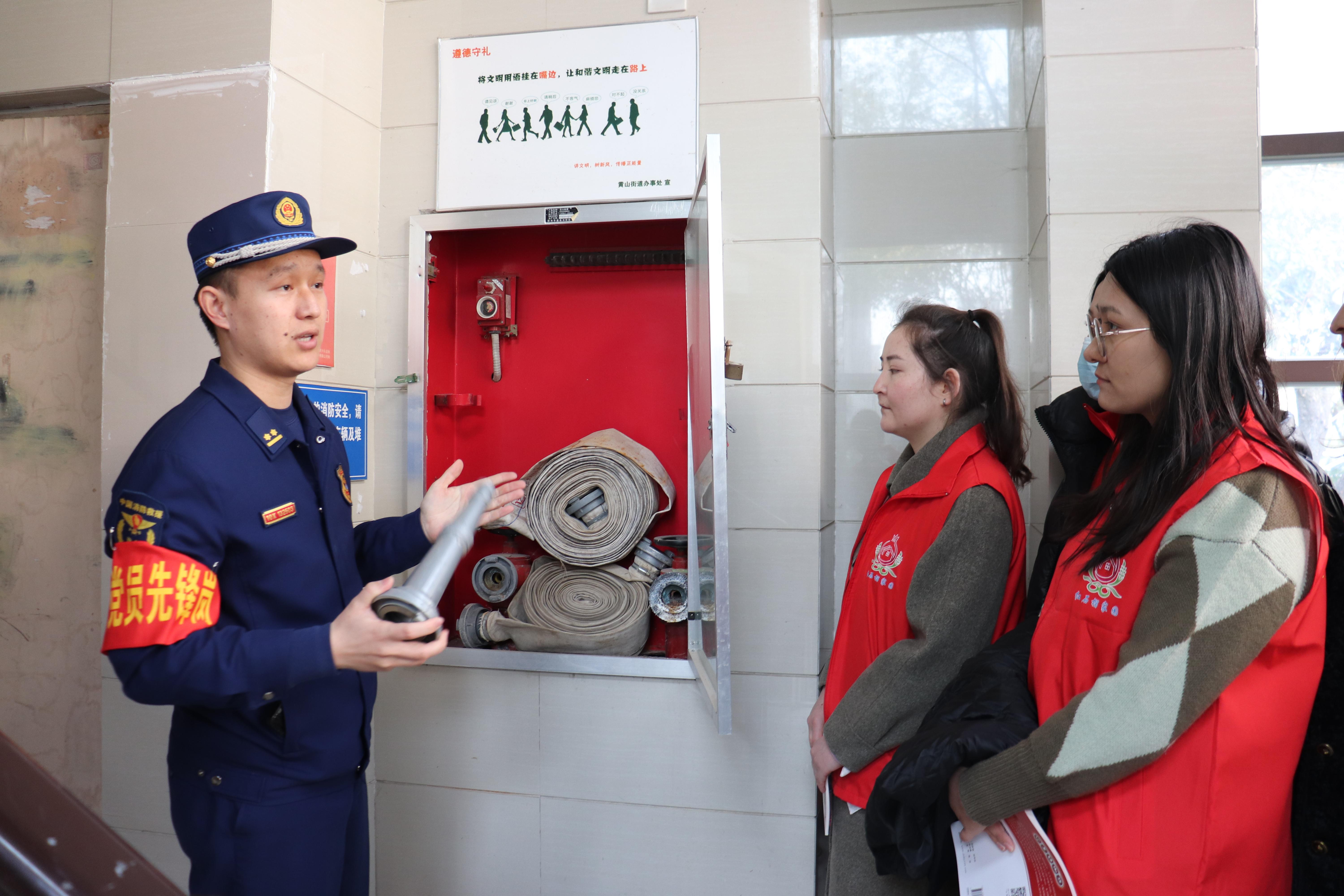 在香庭社区党群服务中心,云龙区郭庄路消防站副站长李涛向社区居民开展了“提高防火意识 关注消防安全”专题讲座,重点讲述防火意识、火灾逃生和消防器材等消防知识,并示范如何正确使用灭火装置。