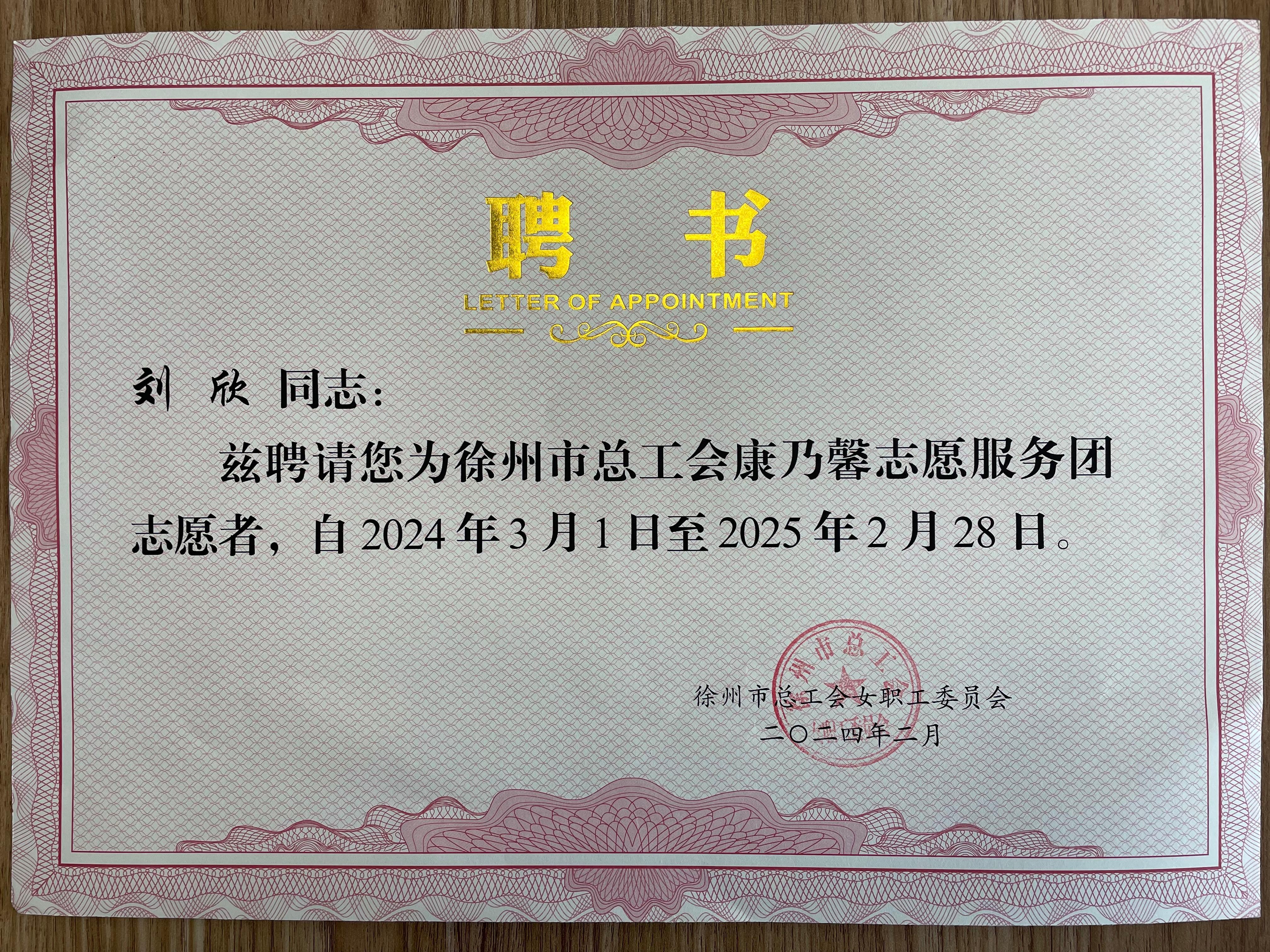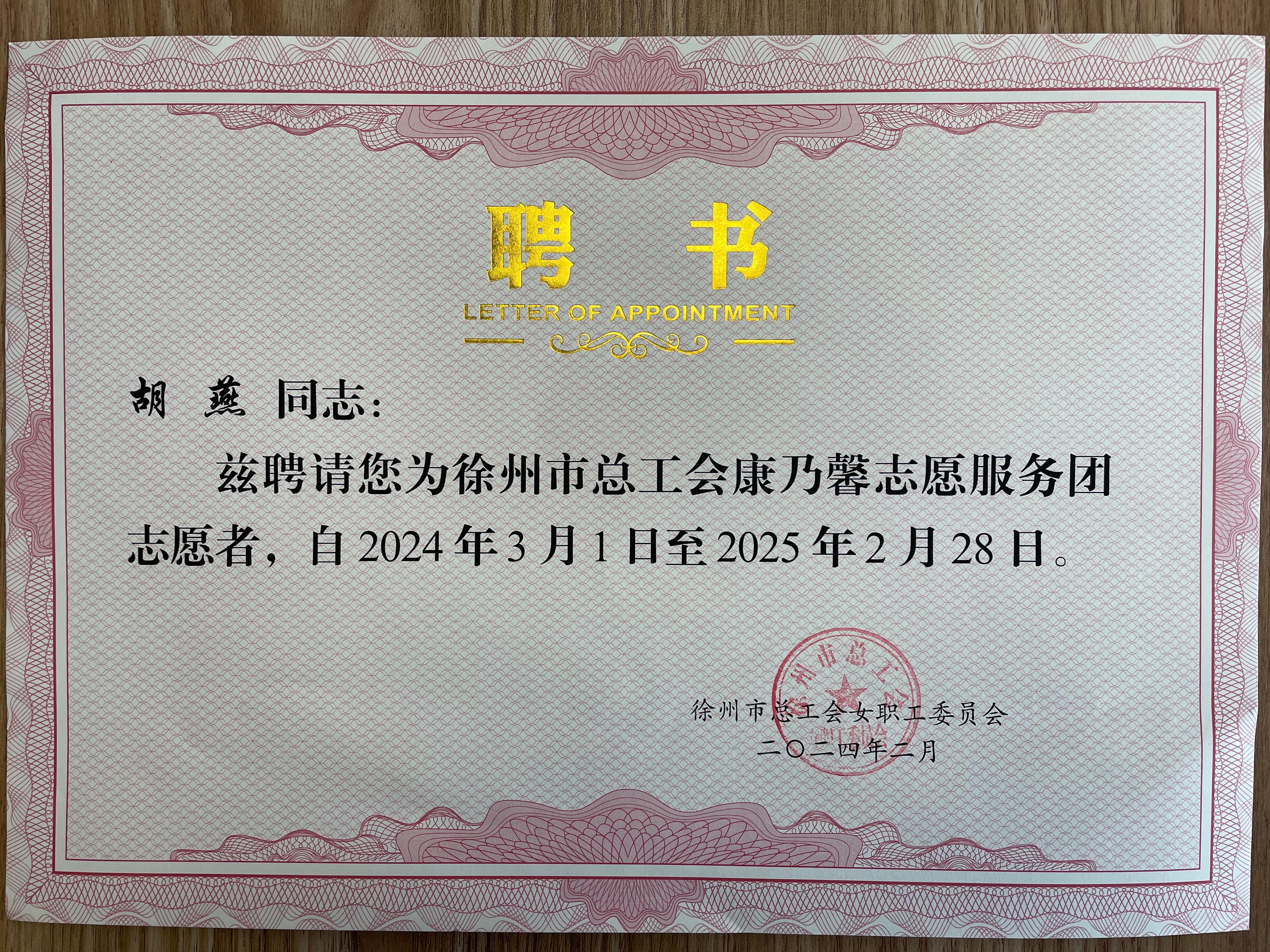 3月19日下午,市总工会召开2024年全市工会女职工工作会议,捕鱼达人 及附属医院刘欣、胡燕、郑鹏、陈浩、应长江、辛力6名同志受聘志愿服务队志愿者。会上颁发了为期一年的聘书。