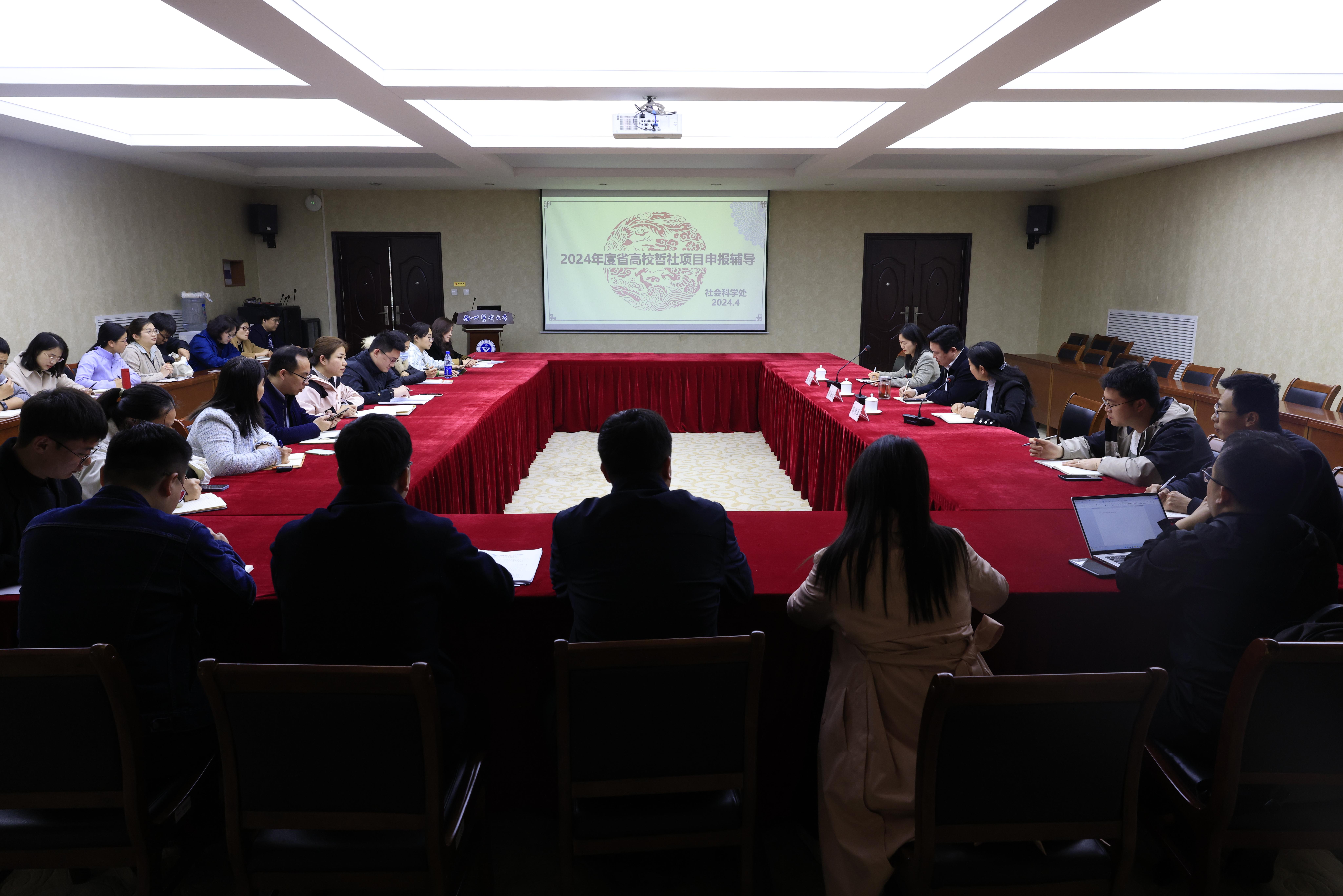 为进一步推动2024年度省高校哲学社会科学研究项目申报工作,提升申报质量,捕鱼达人 于4月3日在行政楼201会议室组织召开专题辅导会。校党委副书记、副校长徐海波,校党委常委、党委宣传部部长、社会科学处处长熊絮茸,党委宣传部副部长、社会科学处副处长唐娟出席会议,2024年度高校哲学社会科学研究一般项目拟推荐项目负责人参加了会议,会议由熊絮茸主持。