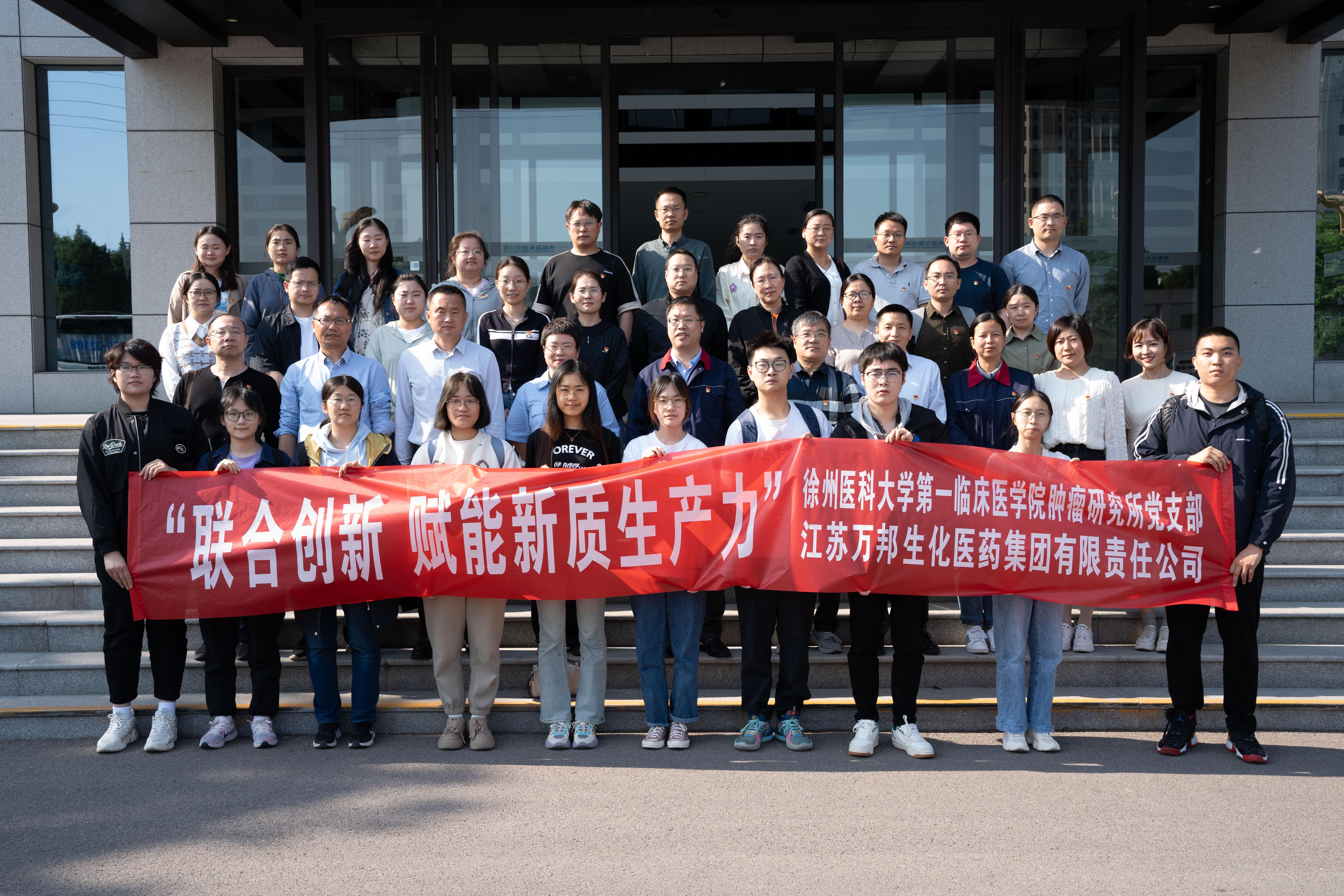 5月8日,第一临床医捕鱼达人 肿瘤研究所党支部与江苏万邦生化医药集团有限责任公司党委联合举办主题为“联合创新 赋能新质生产力”的联学共建活动。万邦医药党委副书记、高级副总裁李博,万戎科技副总经理苏长青教授,万邦医药集团公司管理人员,肿瘤研究所党支部全体党员,“踔厉班”学生代表参加活动。