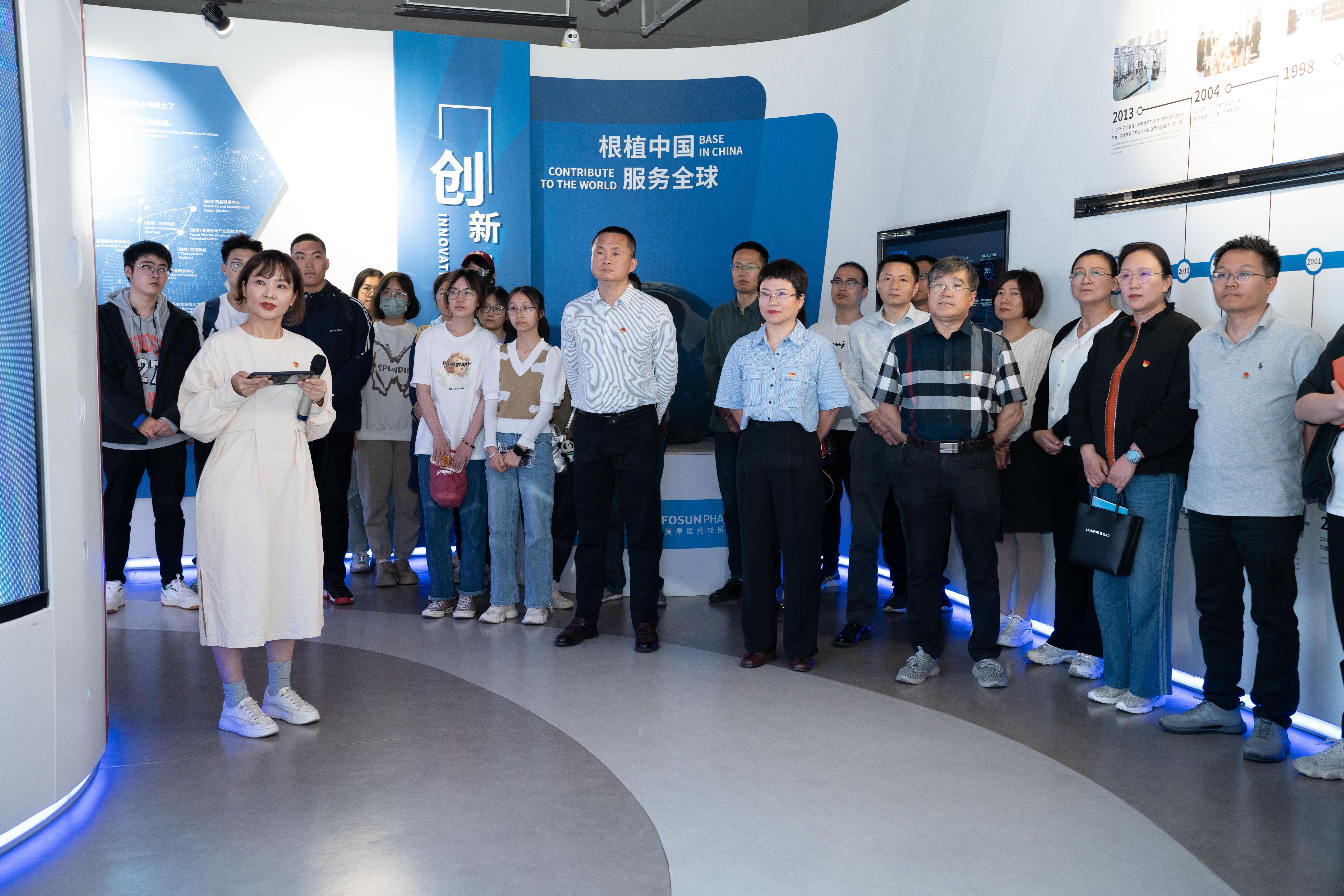 师生们参观了万邦医药集团公司陈列馆,了解了集团从初创阶段到成为地区领先企业的发展历程,以及在“四高一抗”药品生产研发领域的丰硕成果。