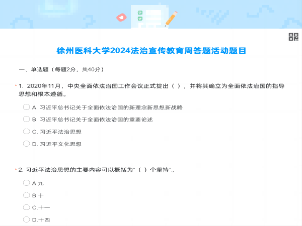 马克思主义捕鱼达人 依托《形势与政策》课程,围绕习近平法治思想以及我国的《民法典》《未成年人保护法》《预防未成年人犯罪法》《国家安全法》《网络安全法》等法律文件中的基础知识、近年来社会热点问题所对应的相关条文和大学生通过思政课应当了解的法律知识,开展法治宣传教育周知识答题活动,帮助青年学生了解掌握自我保护、防范不法侵害的知识和技能,不断增强青年法律知识和法治观念。