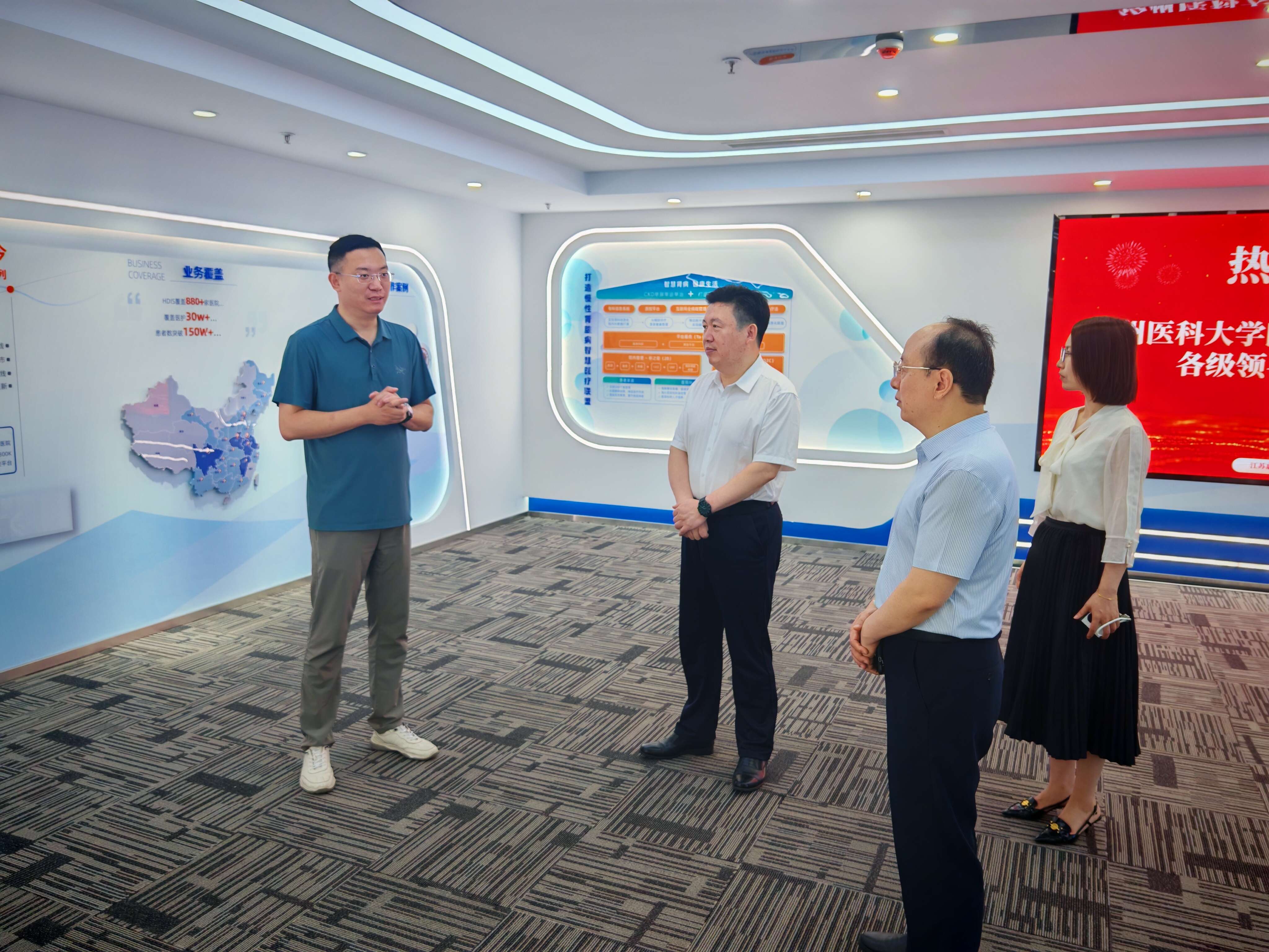 6月14日,校党委副书记、副校长徐海波带领医学信息工程捕鱼达人 部分党政领导、骨干教师赴江苏惠邦信息科技有限公司,并与惠邦公司总经理王炜、首席AI架构师夏圣贤等人进行洽谈。上海复兴医药(集团)股份有限公司执行总裁李胜利陪同。