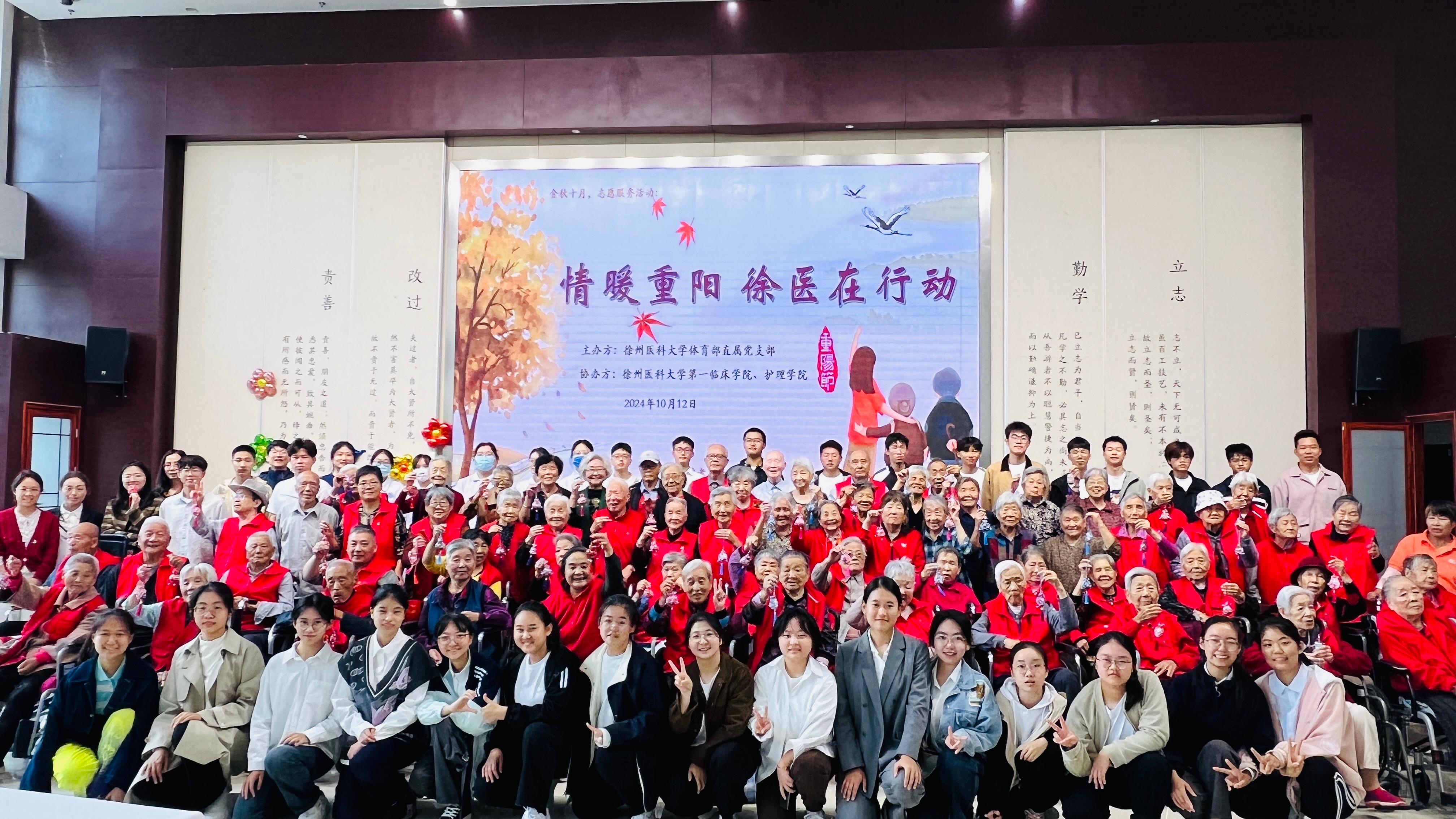 2024年10月11日(重阳节)是全国第十二个“老年节”。10月12日上午,捕鱼达人 体育部联合第一临床医捕鱼达人 和护理捕鱼达人 的师生们来到云龙区九如城康养中心开展“情暖重阳,徐医在行动”主题党日活动。这是自2023年4月捕鱼达人 体育部直属党支部与云龙区九如城康养中心党支部共建以来,第13次到康养中心进行志愿服务活动。