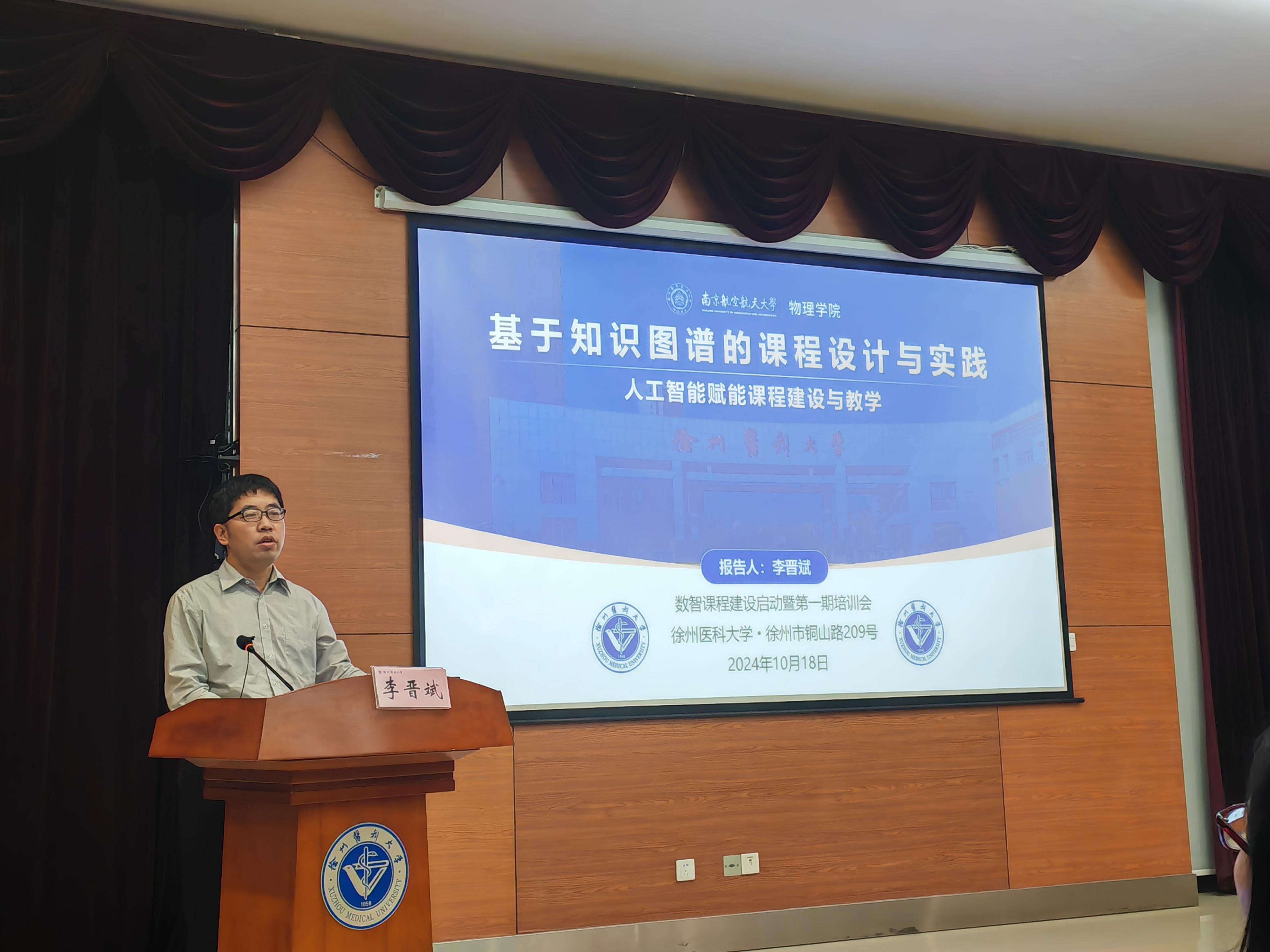 培训会阶段,山东第一医科大学的李福荣教授和南京航空航天大学的李晋斌教授分别以“基于数智课程的混合式教学设计与实践”和“人工智能构建数智课程”为主题内容作讲座。
