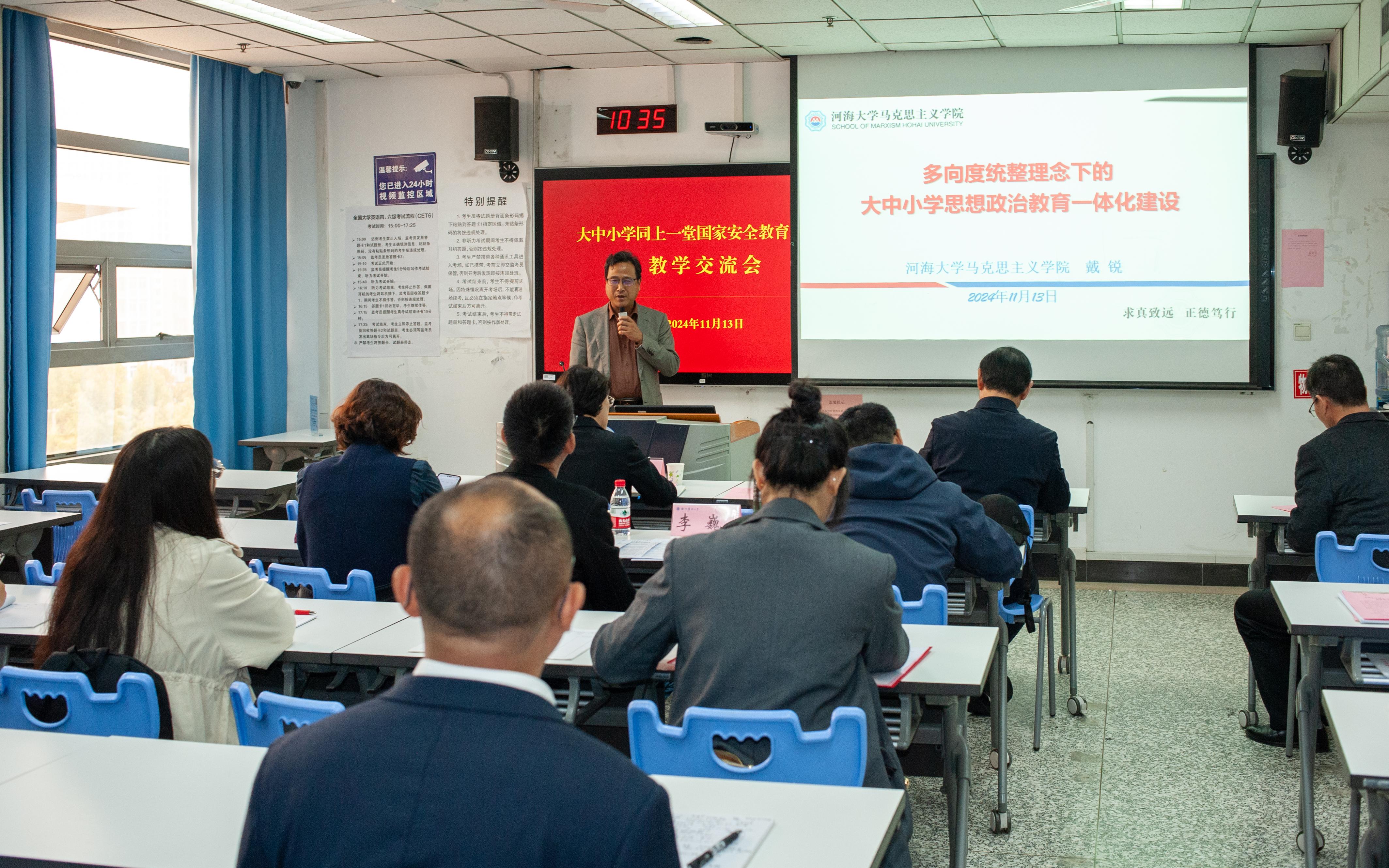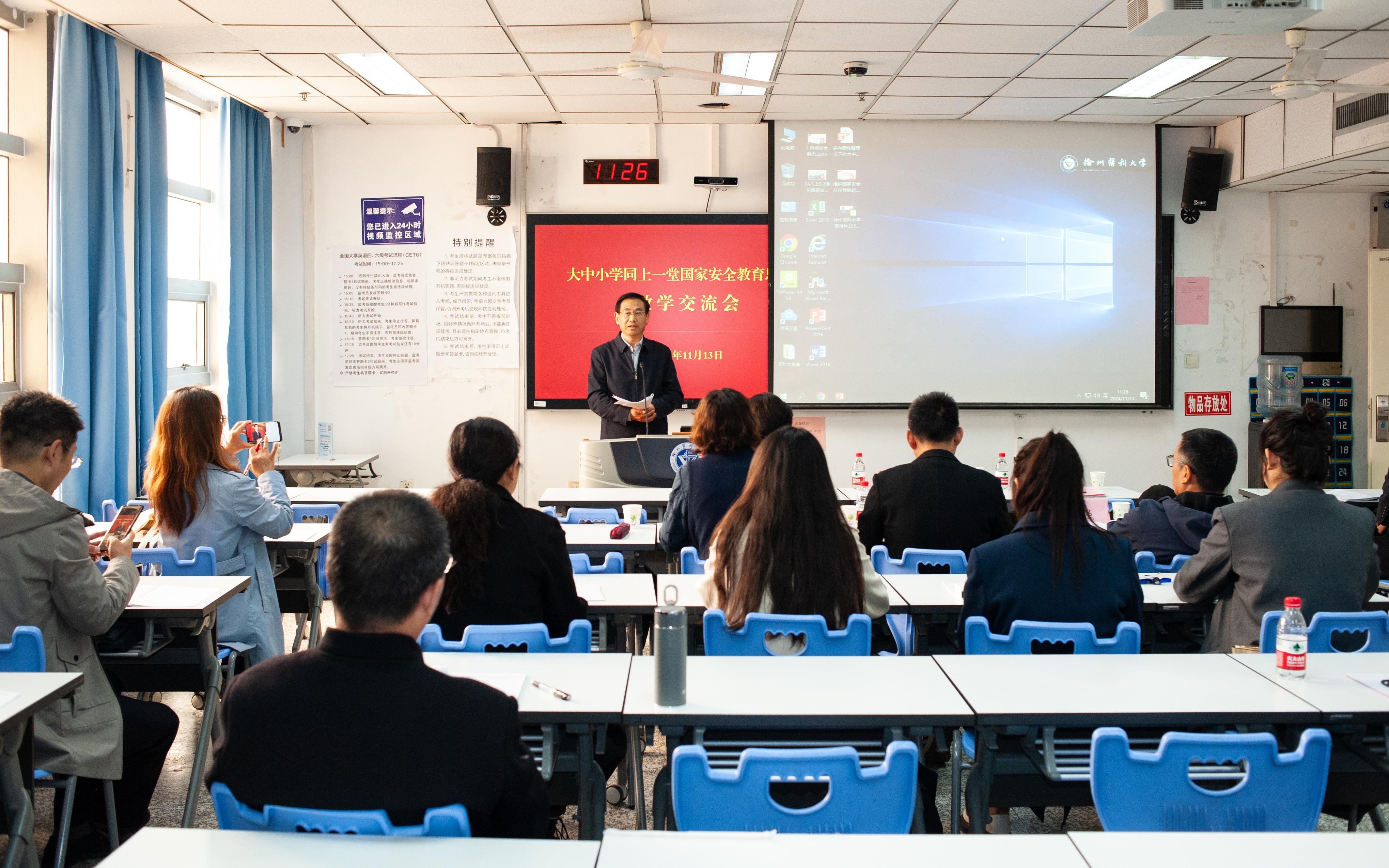 为进一步推进大中小学思政课一体化建设的发展,11月13日上午由捕鱼达人 主办的“大中小学同上一堂国家安全教育思政课”教学交流会在捕鱼达人 教学主楼B502举行。
