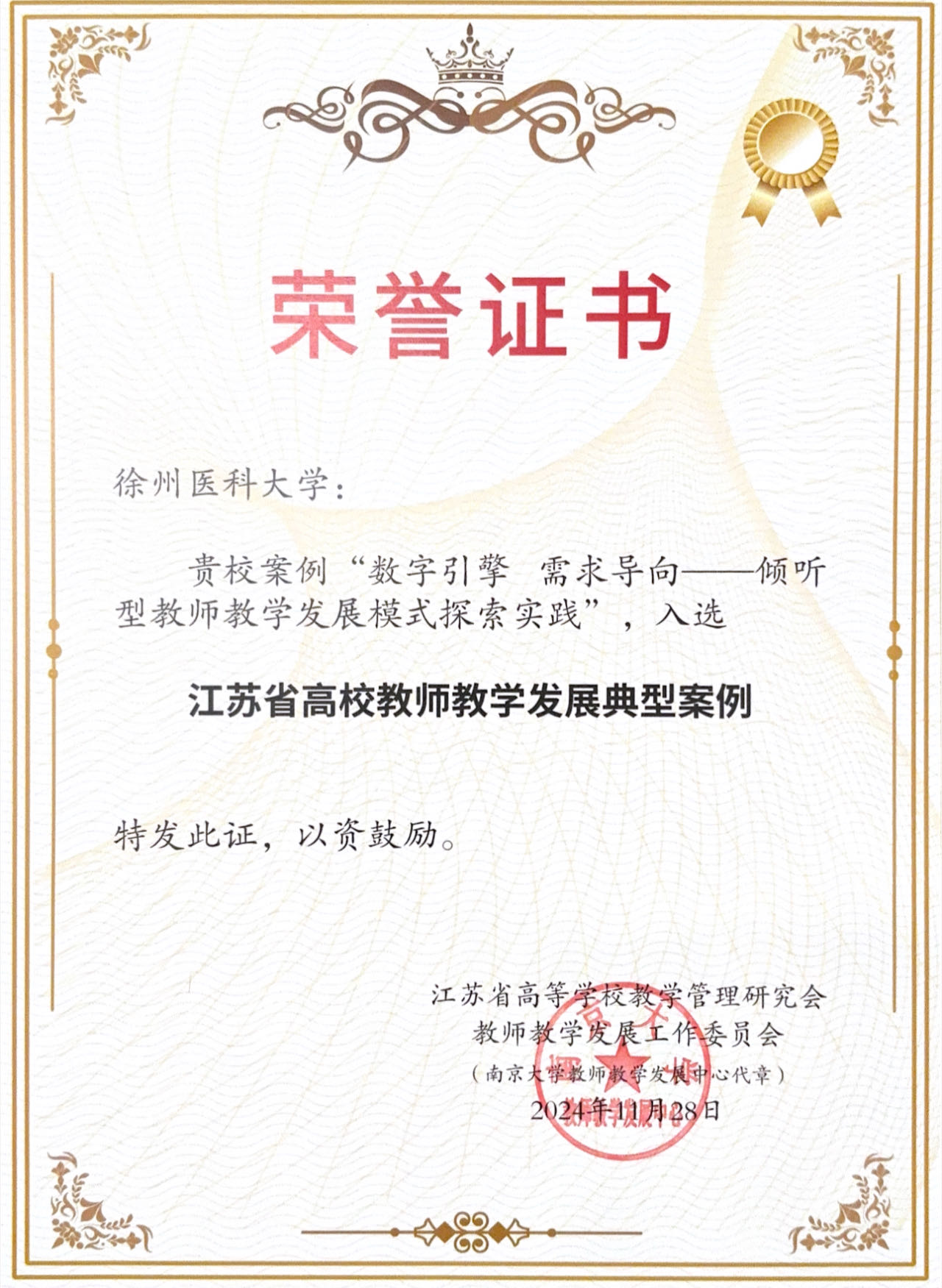 为深入学习贯彻全国教育大会精神,落实《省教育厅关于加强高校基层教学组织建设促进教学能力提升的指导意见》,江苏省教发研究会组织开展江苏省高校教师教学发展典型案例征集活动,旨在打造一批江苏省高校教师发展特色活动品牌系列,加强江苏高校教师教学发展组织联盟的共享交流与成果积累。本次典型案例的入选是对捕鱼达人 教师教学发展中心工作的充分肯定,也让具有徐医特色的教师教学发展模式在高层次平台上得以推广。教发中心将以此为契机,探索数智化教师发展模式,不断提升教师教学水平,为捕鱼达人 教育教学高质量发展提供有效支撑。
