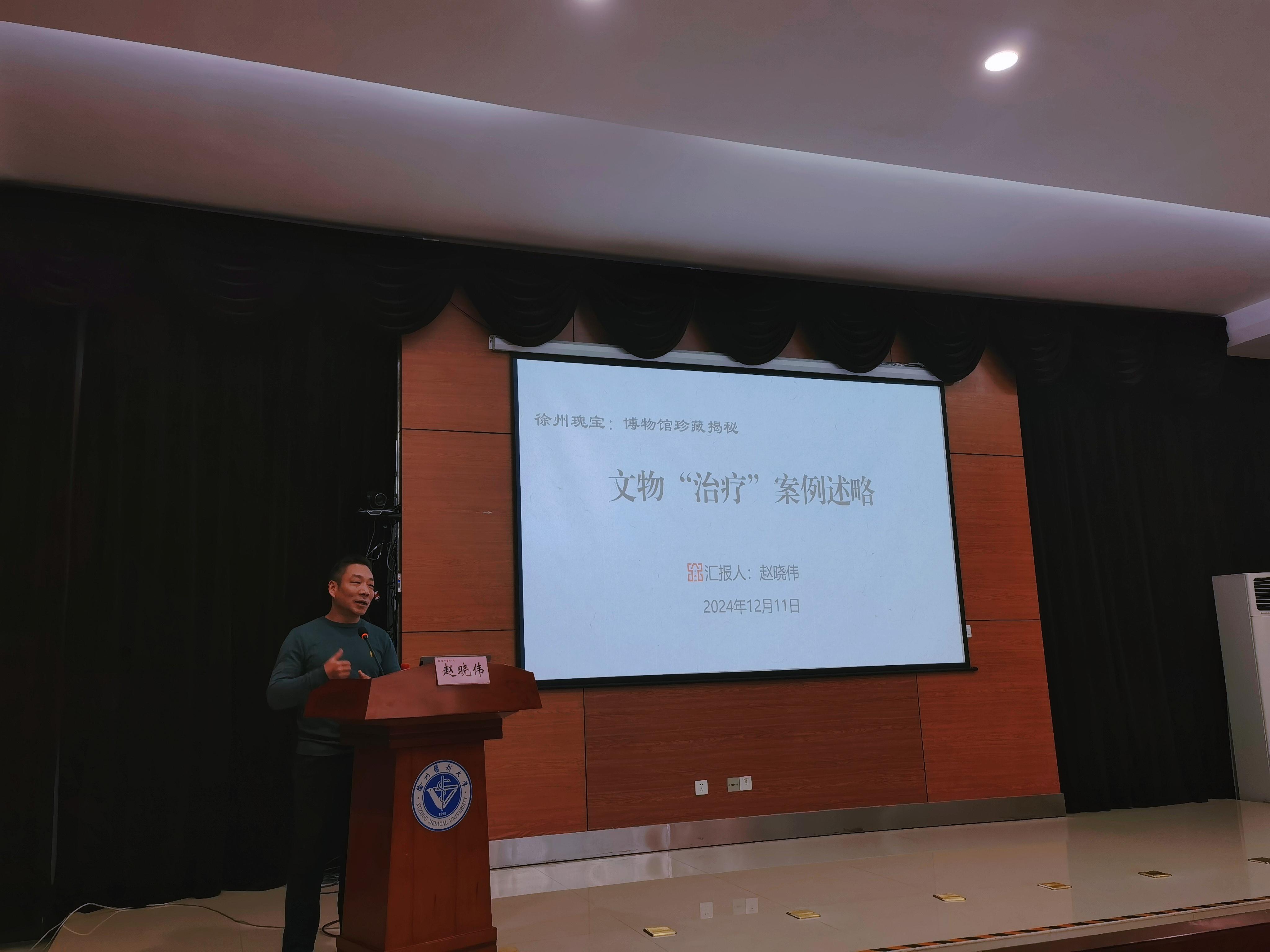 在首次讲座“徐州汉画像石概论”中,陈钊老师将汉画像石的历史背景、艺术风格与文化内涵娓娓道来,让师生们仿佛穿越时空,领略到汉代艺术的独特魅力。第二次讲座中,岳凯老师则使师生对徐州博物馆的陈列特色有了更加全面而深入的了解。“考古改变认知——解读古代徐州”讲座中,原丰老师通过生动的考古故事与珍贵的文物资料,介绍了徐州地区近年来重大的考古发现。而宗时珍老师带来的“西汉楚国玉器及文化内涵”讲座,则通过精美的玉器展品,让师生们对西汉楚国玉器的制作工艺与文化价值有了更加深刻的认识与感悟。在最后一次讲座“文物‘治疗’案例述略”中,赵晓伟老师不仅向师生们展示了文物修复工作的艰辛与成就,还分享了自己在文物修复过程中的心路历程与心得体会,激发了师生们对文物保护事业的无限热情与崇高敬意。