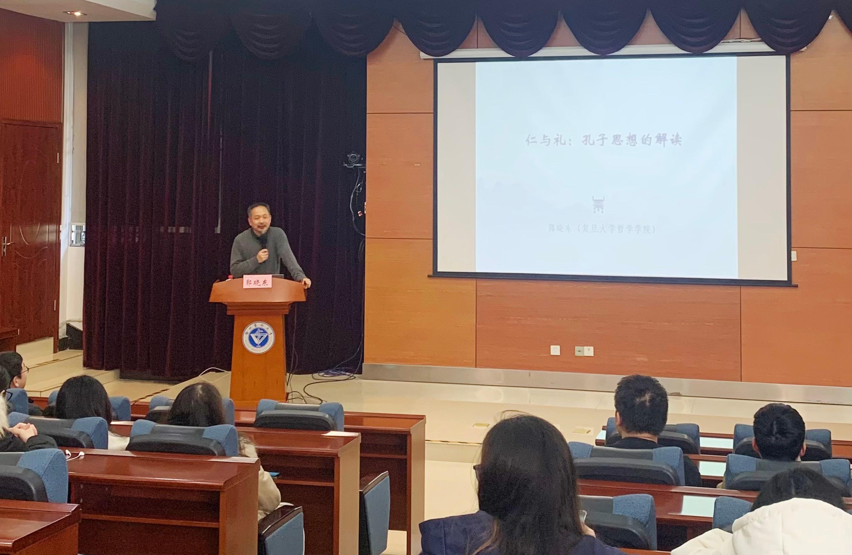 12月16日进行了最后一次收官讲座,主讲人是复旦大学著名学者郭晓东教授,讲座的主题为《仁与礼:孔子思想的解读》,由捕鱼达人 教务处与团委联合举办。