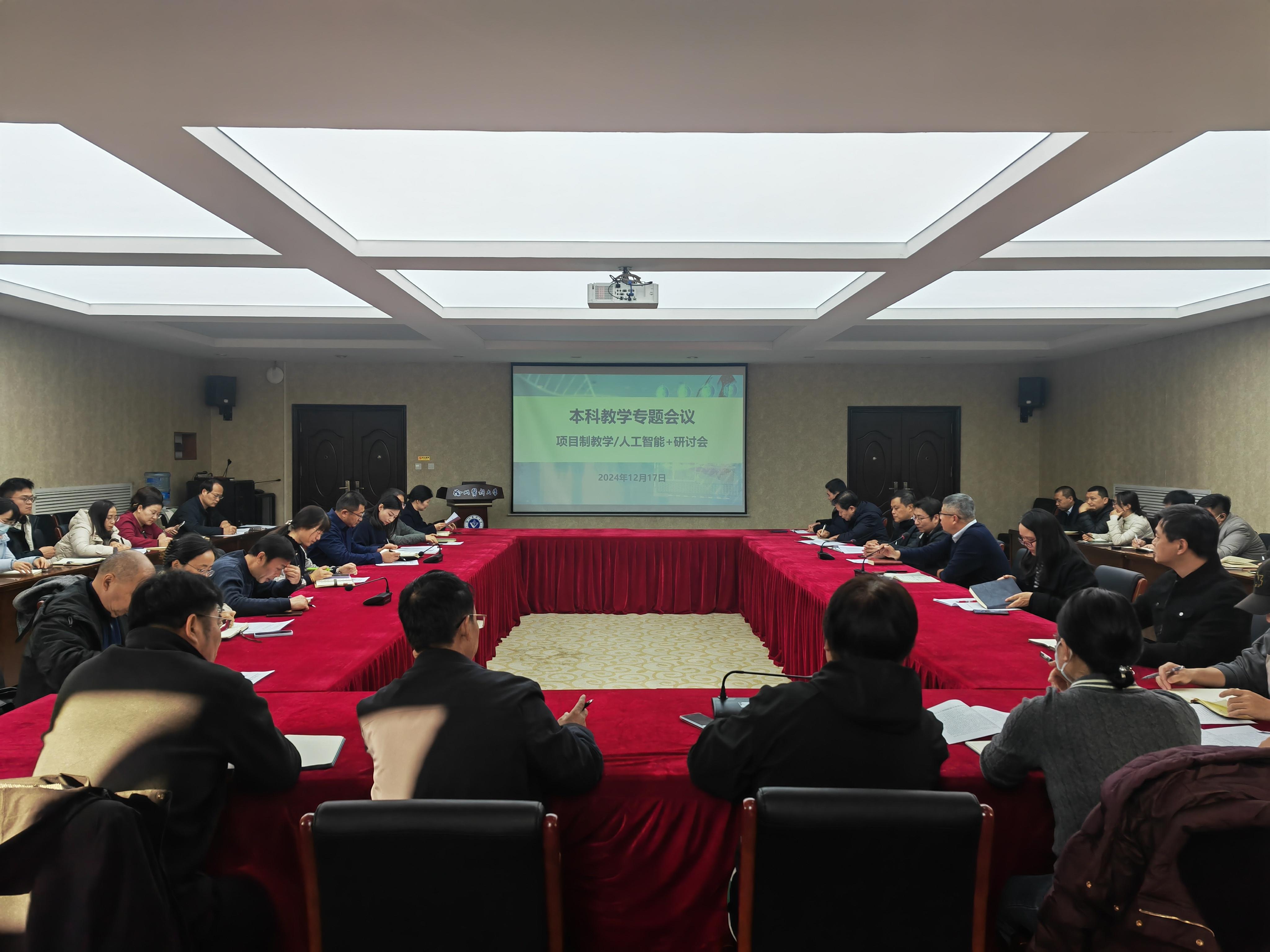 12月17日下午,捕鱼达人 在主校区行政楼201会议室召开本科项目制教学暨人工智能+专题研讨会。校党委常委、副校长郭栋,各捕鱼达人 (部)分管教学的院领导、教学办主任及教务处全体教职工参加会议。会议由教务处副处长赵子明主持。