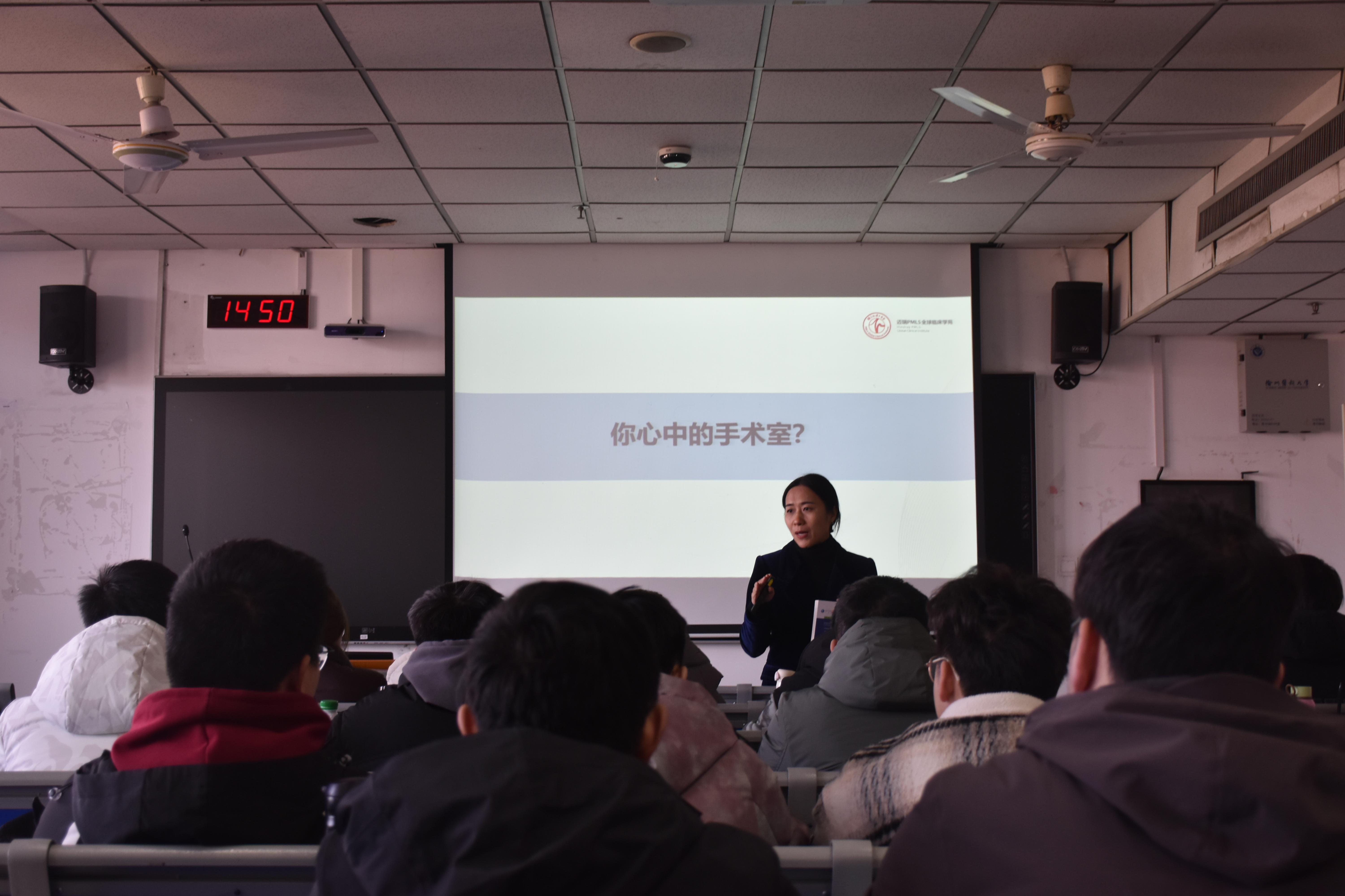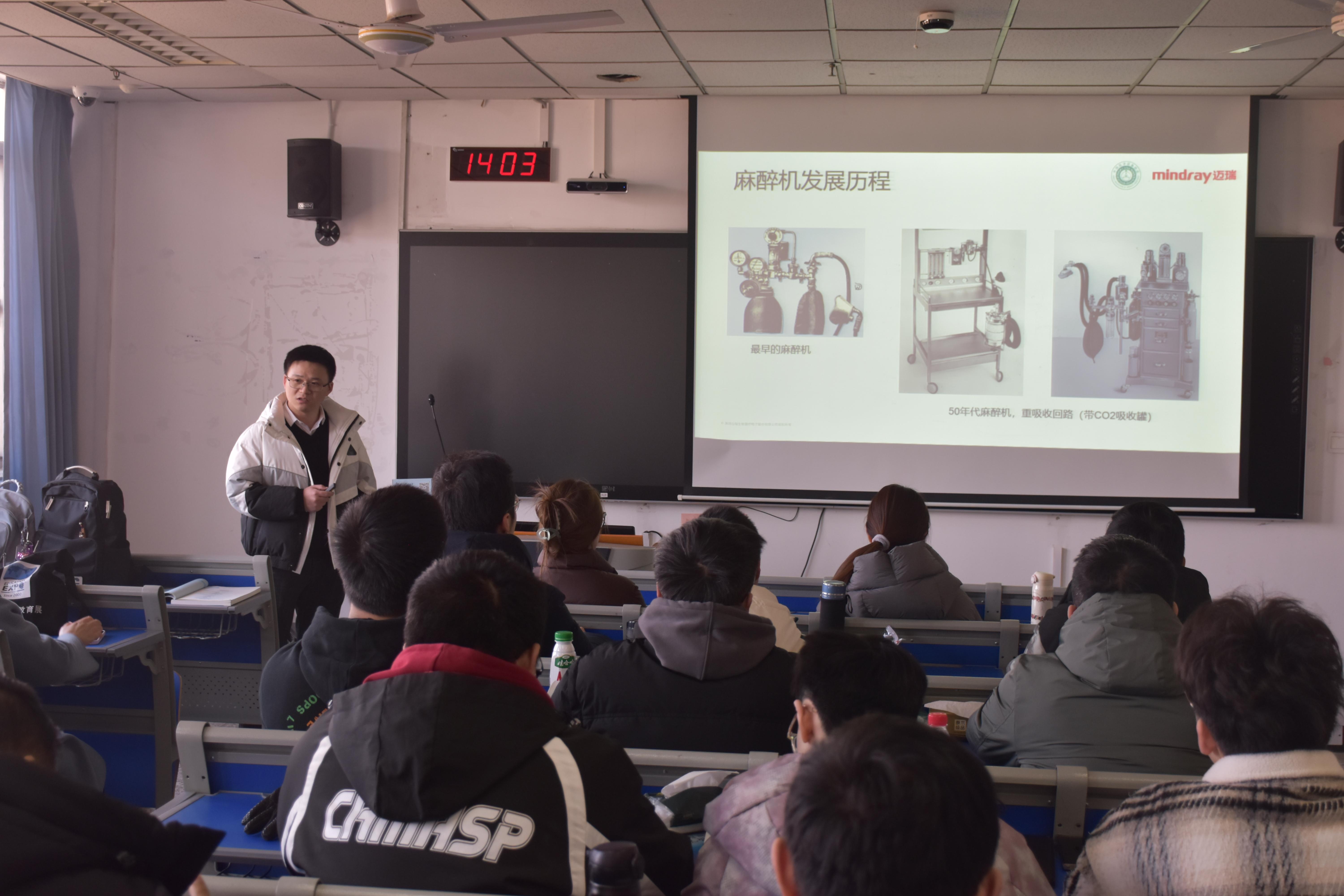 随后,迈瑞PMLS-中国区医学经理李丹妹从自身经历出发,分享了从麻醉科医生到医疗设备行业专家的职业转型历程。她以幽默风趣的语言,讲述了麻醉设备在手术室中的实际应用场景,并结合自身经验,为学生们提供了宝贵的职业规划建议。李丹妹经理的分享不仅让学生们感受到麻醉设备学的广阔前景,也激发了他们对未来职业发展的思考与憧憬。