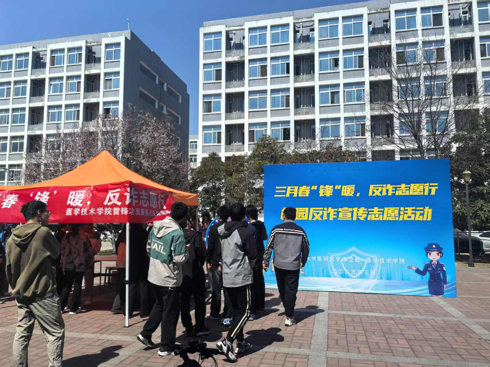 为弘扬雷锋精神,增强学生防范电信诈骗意识,筑牢校园反诈防线,医学技术捕鱼达人 联合校保卫处于3月21日在校青年广场开展了“三月春‘锋’暖,反诈志愿行”校园反诈宣传志愿活动。