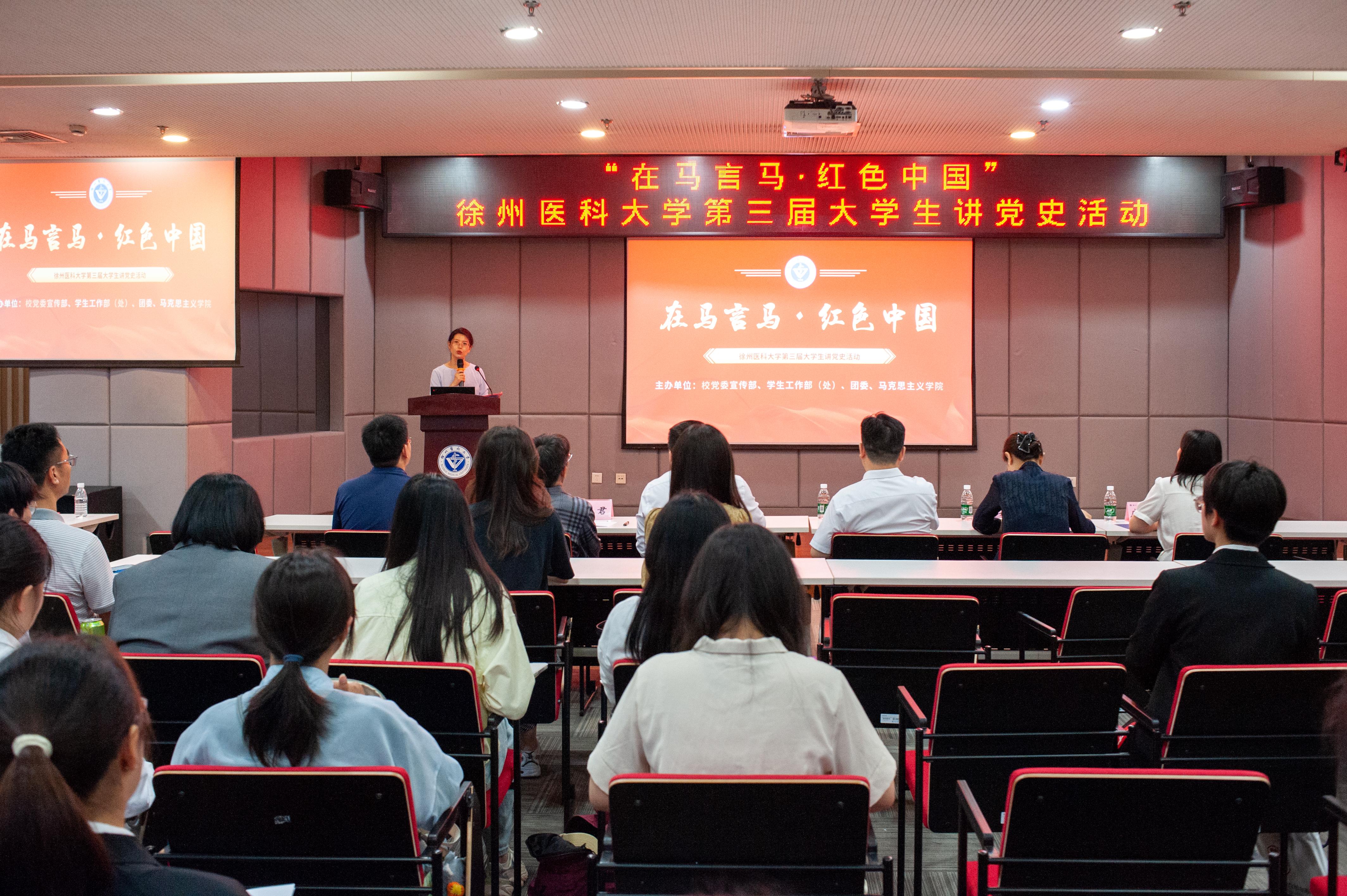 为进一步推动党史学习教育,不断巩固拓展党史学习教育成果,充分发挥党史学习教育在大学生思想政治教育中的主渠道作用,丰富校园文化生活,5月17日,校党委宣传部、党委学生工作部、团委、马克思主义捕鱼达人 联合举办的“在马言马·红色中国”大学生讲党史活动如期开展。校党委副书记、副校长徐海波,相关部门负责人及各捕鱼达人 师生代表出席了活动。