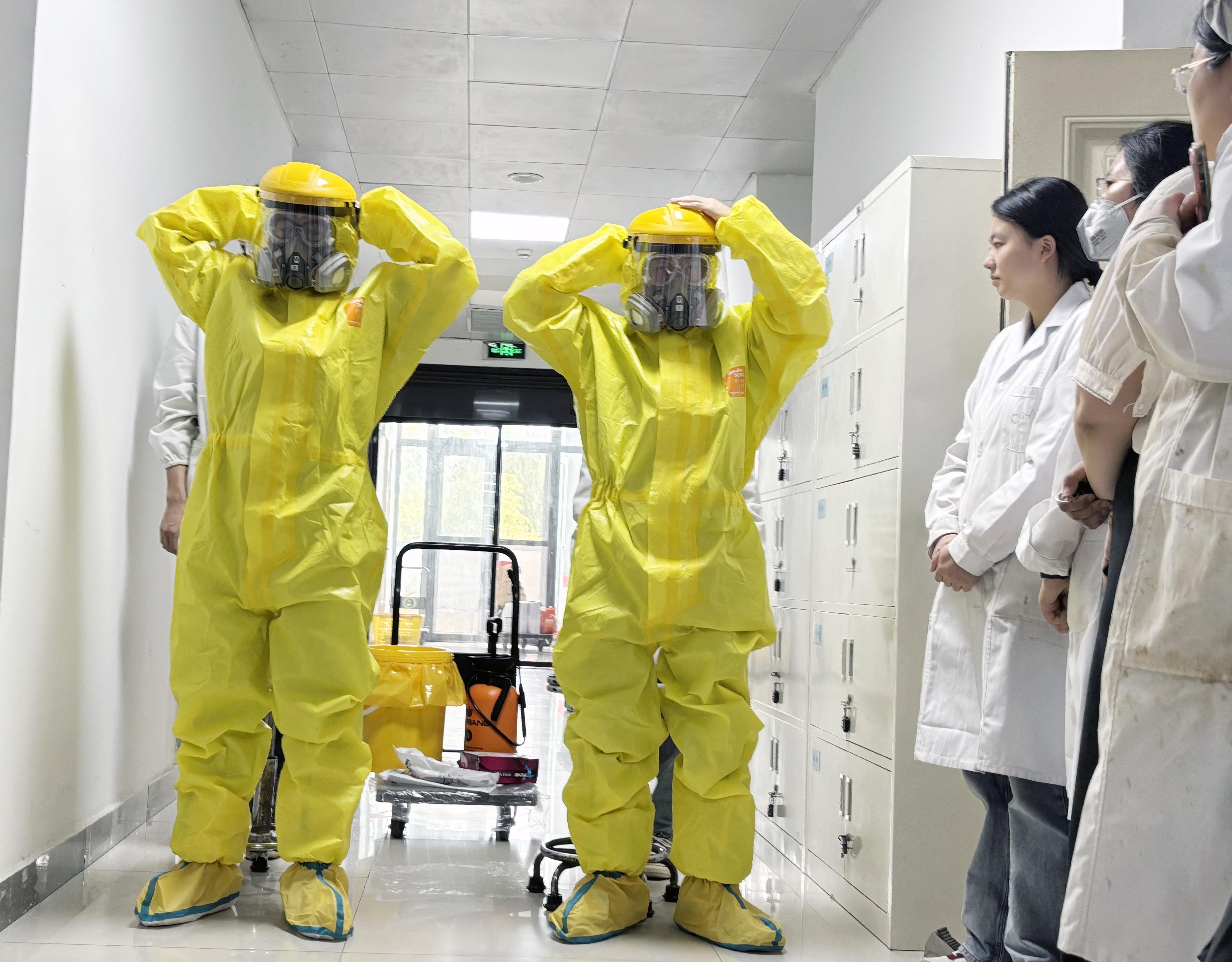 为进一步增强师生风险防范意识,提高安全防护水平和应对突发事故能力,践行“人人讲安全、个个会应急”的实验室安全管理理念,6月9日下午,药捕鱼达人 组织开展实验室安全应急演练,资产管理处副处长谷雨观摩指导,药捕鱼达人 领导、各实验平台负责人、安全员和研究生约50余人参加。