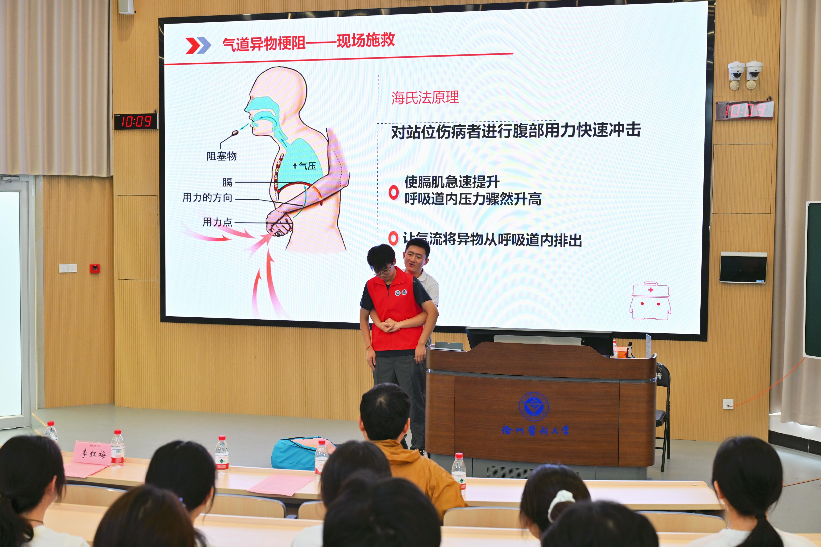 捕鱼达人 红十字会师资朱慕春老师担任本次培训的主讲人。他与大爱急救志愿队成员配合,结合案例与视频演示,生动讲解了应急救护的重要性,并详细介绍了心肺复苏、海姆利克急救法等实用技能的操作要领。
