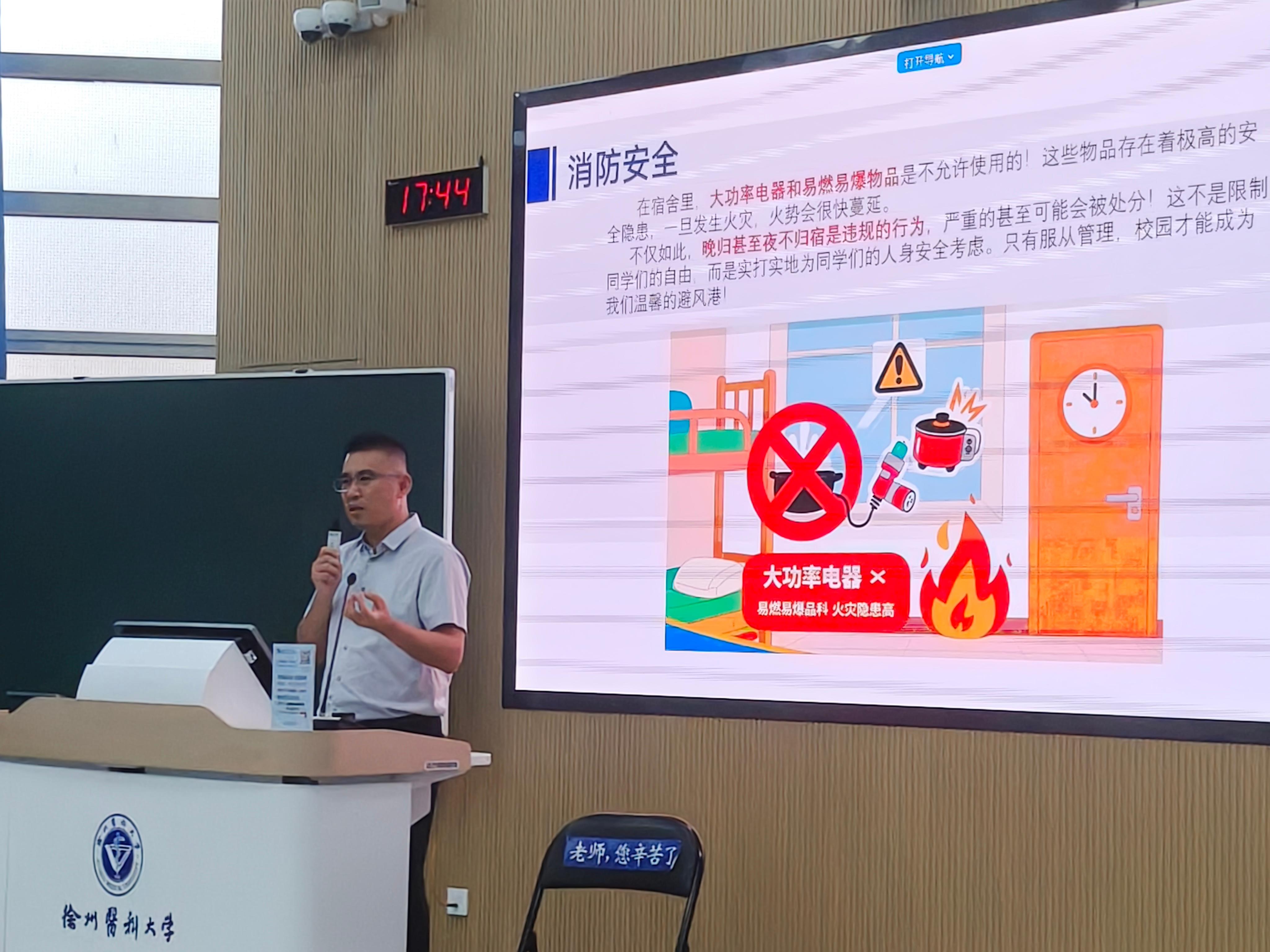 本次安全教育紧扣校园安全实际,聚焦校园易发安全风险领域,由“徐医・阿宝”辅导员工作室骨干成员牵头授课,围绕“消防安全、人身安全、财产安全、网络安全、交通安全”五大核心领域,提前打磨课程内容,确保教育覆盖全面、重点突出。针对新生群体中高发的电信诈骗,重点介绍电信诈骗的特点、主要形式和防范措施;结合近年高校典型火灾案例,详细介绍火灾预防要点和逃生自救方法,解读宿舍安全管理规定,重点强调用电安全,严禁使用违章电器;通过网络安全警示案例,引导新生提升信息辨识能力,严守法律底线;同时,课程还融入党的民族宗教政策宣讲,明确抵御宗教渗透、防范校园传教的要求,帮助新生树立正确价值观。自新生入学以来,累计组织授课16场次,3100余名本科生、1500余名研究生全员参与,通过生动讲解和互动交流,有效推动新生安全意识实现从“被动知晓”到“主动防范”的深度转变。