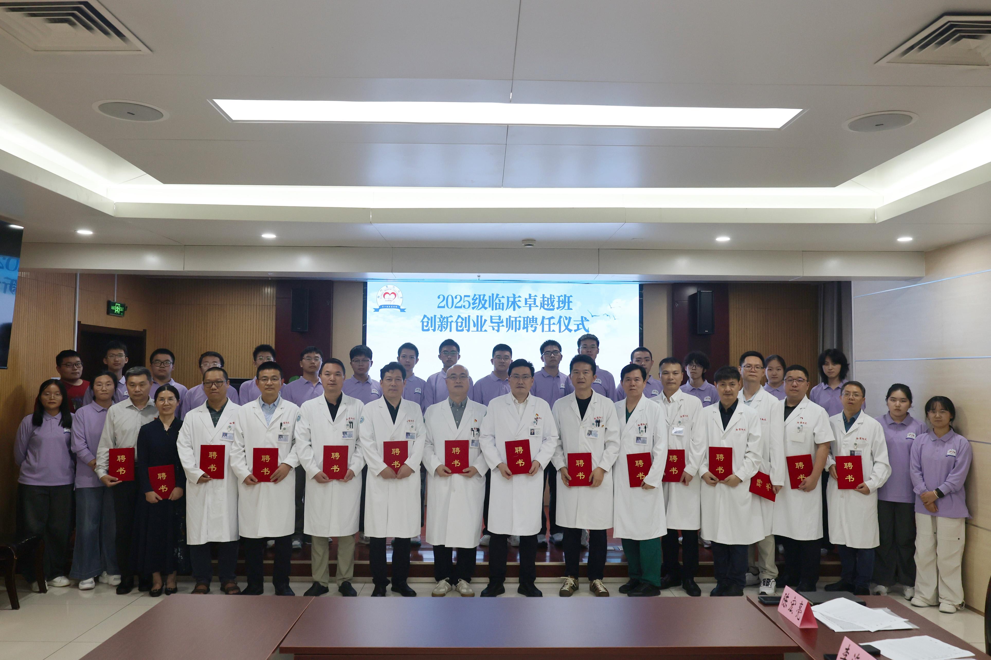 9月22日下午,第一临床医捕鱼达人 在徐医附院第二会议室举行2025级临床卓越班创新创业导师聘任仪式。校党委常委、副校长、徐医附院党委书记、2025级临床卓越班班主任吕凌教授出席仪式,捕鱼达人 党政领导、受聘创新创业导师、教师代表及2025级临床卓越班学生参会。仪式由第一临床医捕鱼达人 院长张昊主持。