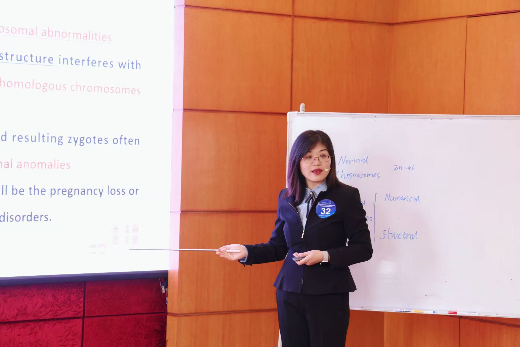 在授课展示环节,于亚男老师以“The Genetic Basis for Chromosomal Disorders”为题,从临床病例切入,通过流畅的英语表达、生动的图像和动画演示,将抽象的遗传学知识转化为易懂的教学内容,系统讲解了染色体数目异常和结构异常的遗传基础,展现出扎实的专业功底和教学能力,赢得专家们的高度赞誉。大连医科大学王英德教授在点评时特别指出,于老师的授课“逻辑清晰、重点突出、互动充分”,在20分钟内完整展现了一堂高质量医学课程。