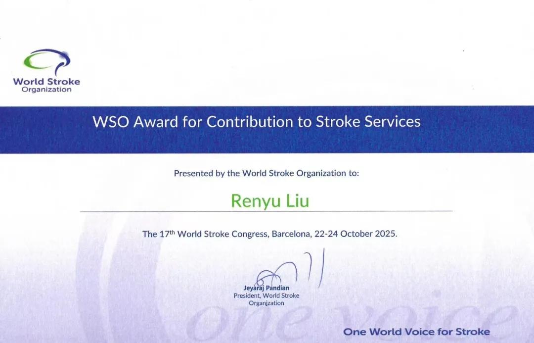刘仁玉教授长期致力于推动从“中风意识”向“中风行动意识”的理念转变,是“中风120”“Stroke 112”“Stroke 911”等策略的创始人之一。这些创新举措显著提升了公众识别中风症状与及时拨打急救电话的行动力,为全球卒中防治事业作出了重要贡献。