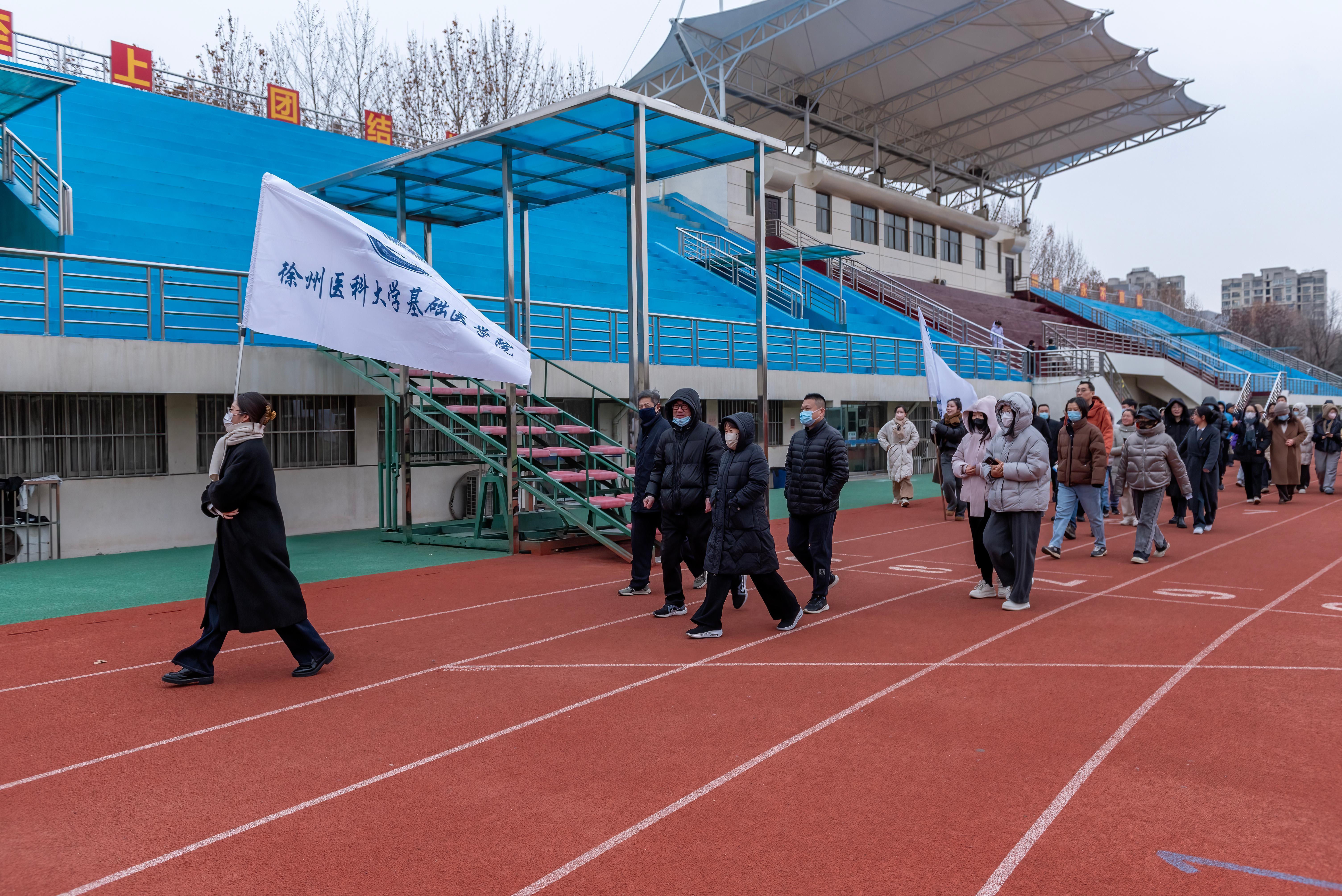 本次健步走路线以主校区体育场为起点和终点,从体育场西南门出发,依次经过文体活动中心、科教楼、图书馆等,全程共设置七个打卡点。教职工通过徐医微校园“2026元旦健步走”小程序进行线上签到打卡。尽管冬日寒风凛冽,但大家精神抖擞、热情高涨。行进途中,或结伴畅谈,交流工作与生活,或边走边欣赏校园冬日景致,在轻松愉悦的氛围中舒缓压力、增进情谊。