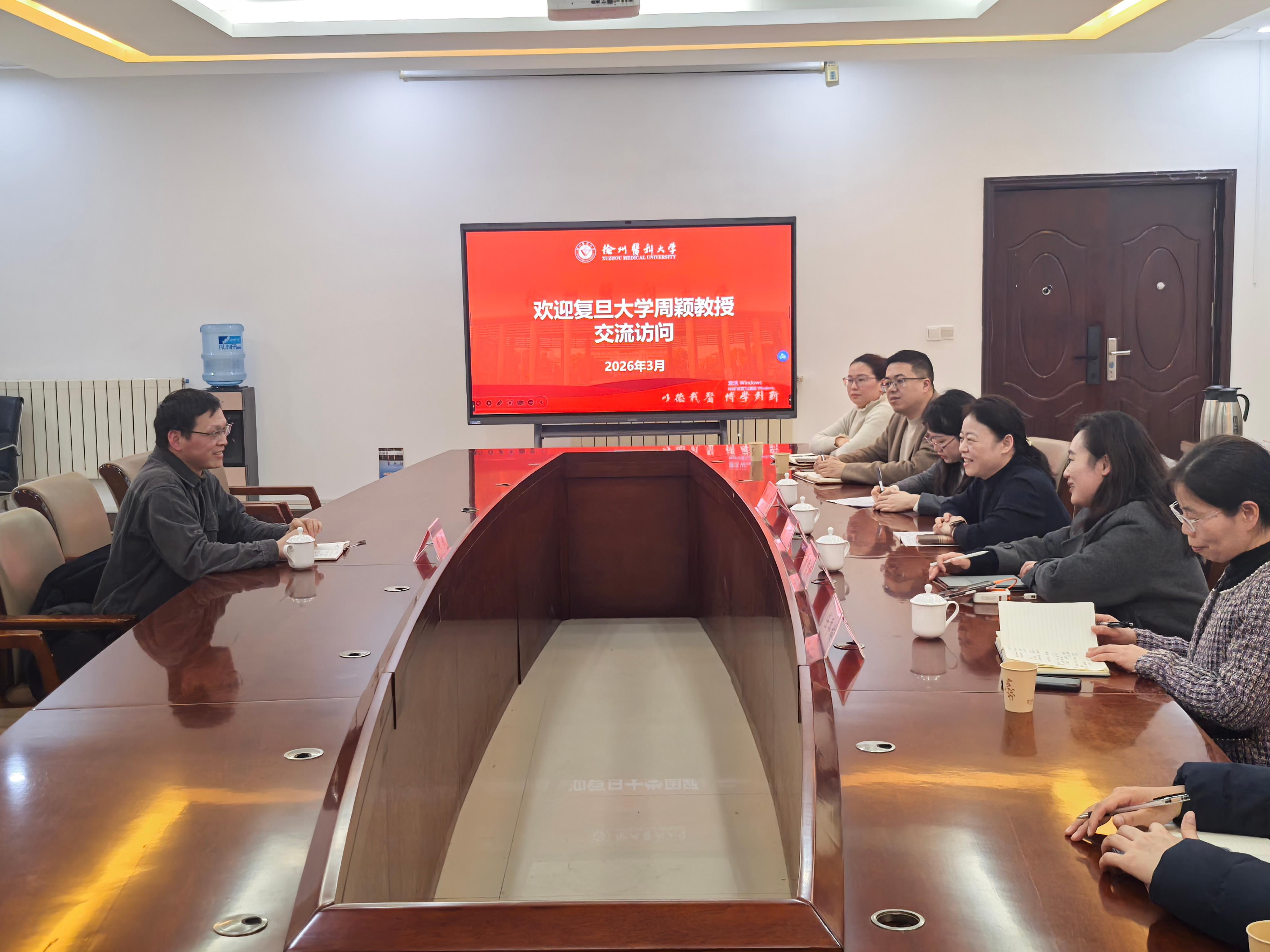 高端人才引进办公室主任陈玮、药捕鱼达人 院长周雪妍、科技处处长孙莹及相关学科老师与周颖教授就学科发展、课题申报、科研合作、人才培养等事宜进行了深入交流。