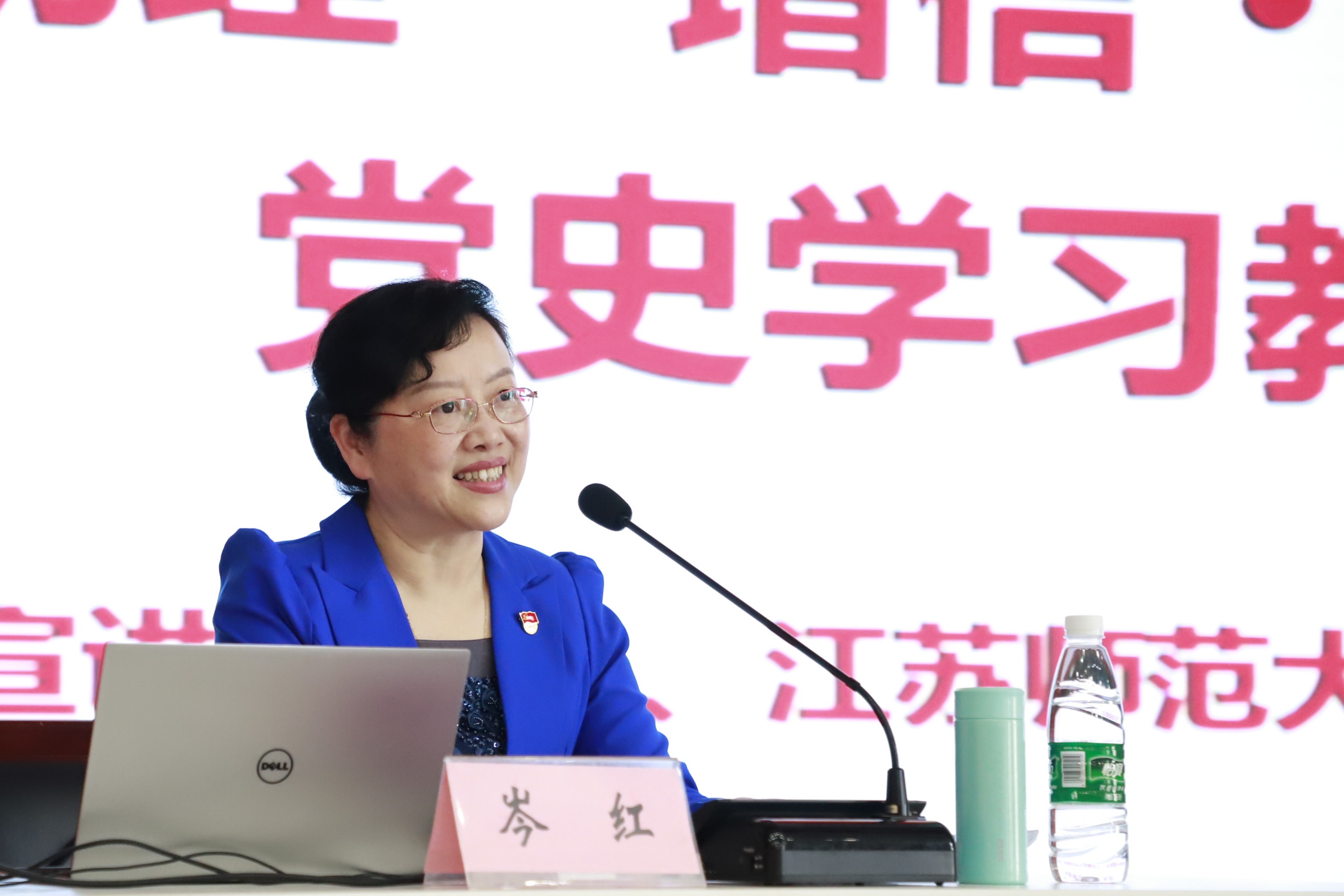 岑红教授在主题宣讲中深刻阐明了开展党史学习教育的重大意义,系统讲述了百年党史的基本框架和历史主题,细致分析了开展党史学习教育需要把握的重点和学以致用的交汇点。她围绕习近平总书记在中央党史学习教育动员大会上的重要讲话精神以及《论中国共产党历史》一书内容,从“认清现实迈向未来”“推进事业必须修好的必修课”“以史鉴今、资政育人”“开拓前进的勇气和力量”等九方面阐释了党史学习教育的重大意义,结合“四个历史时期”“三次伟大飞跃”回顾了中国共产党百年奋斗历程,并讲述了四个历史时期中国共产党所做的四件大事——中国共产党成立、新中国成立、实行改革开放、奋进新时代,深刻分析了“为人民谋幸福”“为民族谋复兴”“为世界谋大同”三大历史主题。她强调,党史学习教育要把握重点,坚持学用有机交融,要了解党的道路选择和坚持,坚定道路自信;要感悟党的创新理论和思想伟力,增强“四个意识”和“四个自信”的理论自觉和政治自觉;要总结党的历史经验,不断提高应对风险挑战的能力水平;要赓续革命精神,传承红色基因,始终保持昂扬斗志。