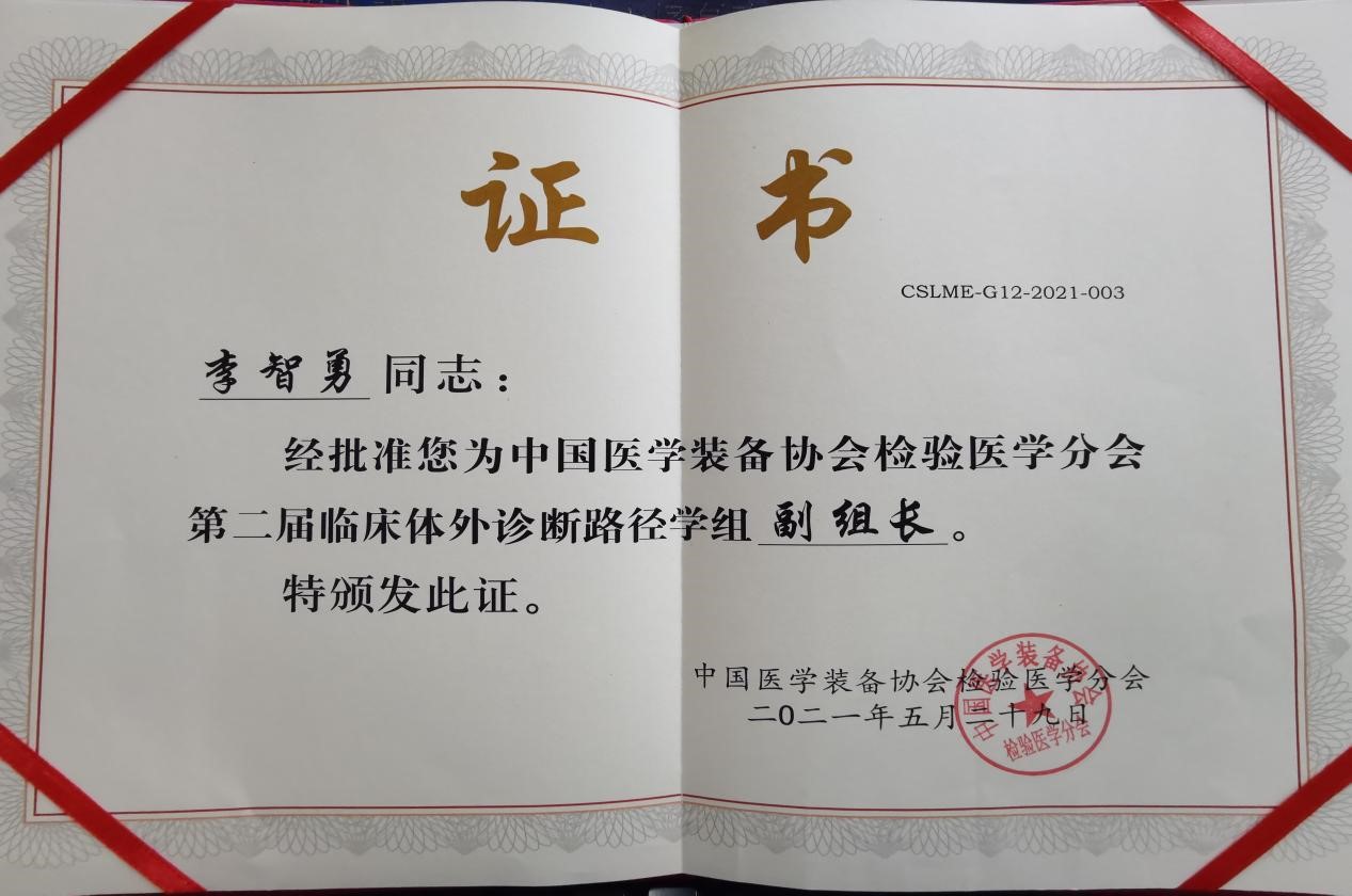 李智勇主任当选中国医学装备协会检验医学分会第二届临床体外诊断路径学组副组长,充分体现了附院核医学科在全国的影响力,也是附院改革转型新时期人才学科战略的实际践行。