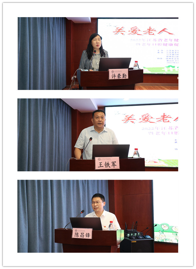 省卫健委正处职卫生健康监察专员许豪勤、市卫健委四级调研员王铁军、附属口腔医院院长陈昌锋出席活动并致辞。省卫健委老龄健康处三级调研员吕乘军、市卫健委老龄健康处处长王娜、泉山区卫健委党委委员孙勤、市卫健委老龄健康处四级主任科员杨军、江苏省老年病医院老年医学科副主任医师陆冰、南京医科大学附属口腔医院特诊科主任医师马骏驰、南京医科大学附属口腔医院特诊科护士长纪迎迎等应邀参加活动。会议由附属口腔医院党委委员、口腔医捕鱼达人 副院长袁长永主持。