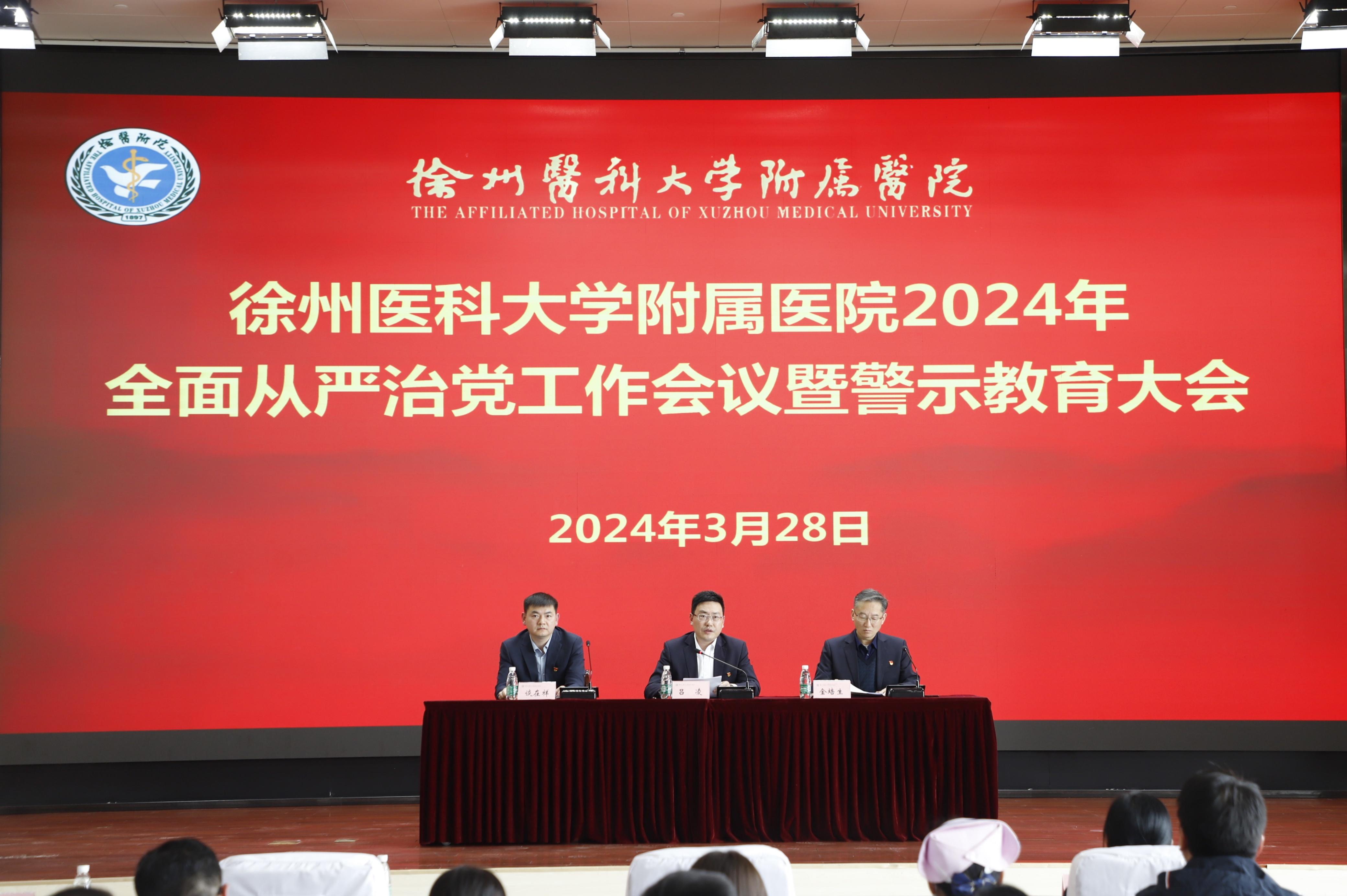 3月28日下午,捕鱼达人 附属医院在第一会议室召开2024年全面从严治党工作会议暨警示教育大会。捕鱼达人 党委常委、副校长、徐医附院党委书记吕凌出席会议并讲话,徐医附院院长金培生主持会议。医院党政领导、纪委委员、党总支书记及纪检委员、党支部正副书记、职能部门负责人、临床医技科室主任、病区主任、护士长参加会议。