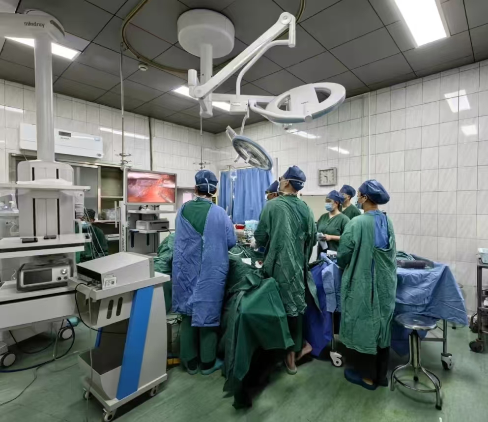 在这关键时刻,徐医附三院院长宋军、普外科主任张洪伟带领普外科部分医护人员迅速组建了一支经验丰富、技术精湛的医疗团队,对杨先生的病情进行了全面评估和深入讨论,制定了详尽而科学的治疗方案,并在除夕前一天,开展了手术。宋军凭借深厚的医学造诣和丰富的临床经验,与普外科、麻醉科医疗团队密切协作。经过3个小时的艰苦奋战,手术取得了圆满成功,肿瘤被完整切除。那一刻,手术室内紧张的气氛瞬间被如释重负的喜悦取代,医护人员疲惫的脸上露出了欣慰的笑容。