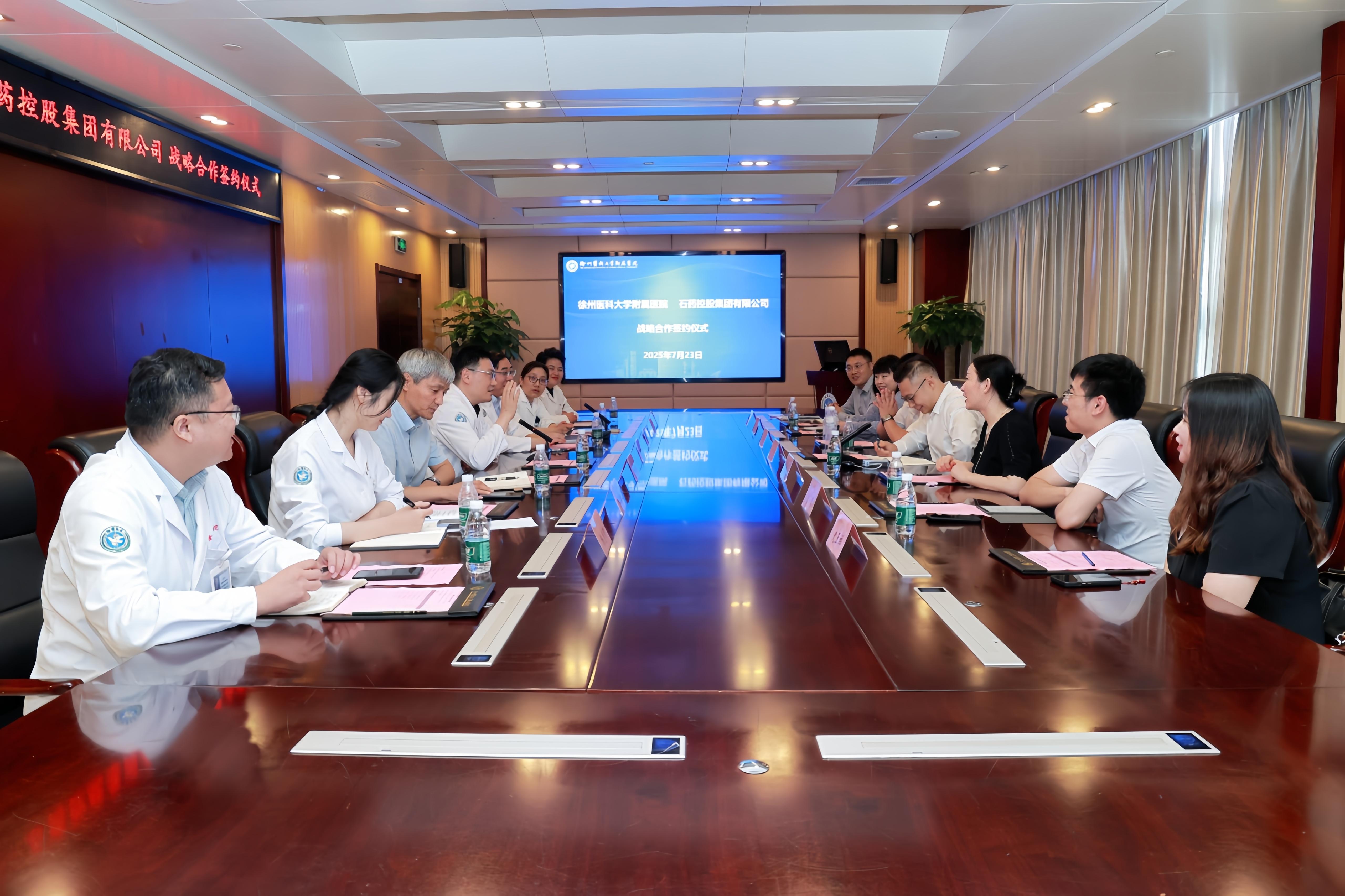 双方代表共同观看了徐医附院宣传片。蔡鑫介绍了石药控股集团有限公司的基本情况。吕凌与蔡鑫代表双方单位签订了战略合作协议书。